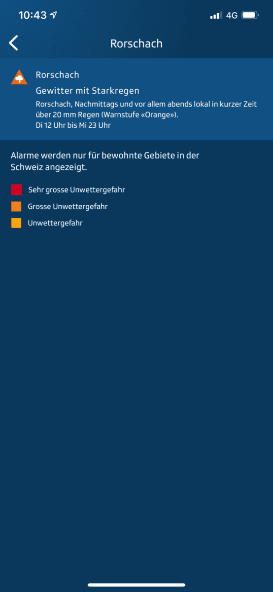 Gewitter mit Starkregen prognostiziertThemen:Rorschach 8. Juni 2021 - 12:18Eigentlich müsste es schon regnen… Das Ganze wird als grosse Unwettergefahr dargestellt. Mal schauen, was da auf uns zukommt. Aktuell um 12.18 Uhr kommt das Wetter noch völlig entspannt daher.Teilen mit: Einen Link per E-Mail an einen Freund senden (Wird in neuem Fenster geöffnet) E-Mail Drucken (Wird in neuem Fenster geöffnet) Drucken Auf Facebook teilen (Wird in neuem Fenster geöffnet) Facebook Auf X teilen (Wird in neuem Fenster geöffnet) X Auf WhatsApp teilen (Wird in neuem Fenster geöffnet) WhatsApp Gefällt mir:Gefällt mir Wird geladen …Newsletter abonnieren Bitte dieses Feld leer lassenBitte wähle, ob Du über jeden neuen Beitrag sofort oder lieber jeden Morgen gegen 9 Uhr eine Zusammenfassung der neusten Beiträge erhalten möchtest.Liste(n) auswählen: Neues vom Echo (Zusammenfassung) Neues vom Echo (Sofortbenachrichtigung) Dieses Feld wird benötigt.Prüfen Sie Ihren Posteingang und den Spamordner, um Ihr Abonnement zu bestätigen.