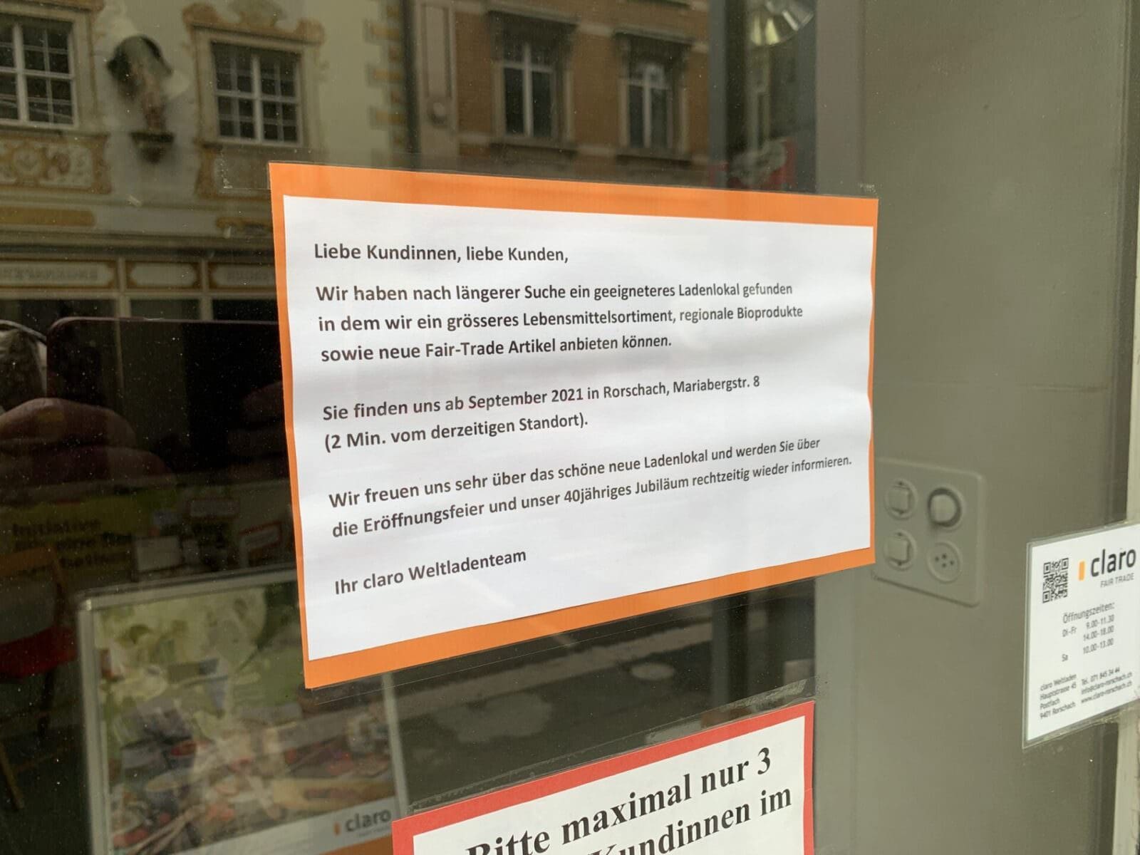 Die Botschaft an der Ladentüre ist eindeutig und auch auf der eigenen Homepage wird das bereits kommuniziert. Im September erfolgt der Wechsel von der Haupt- an die Mariabergstrasse.