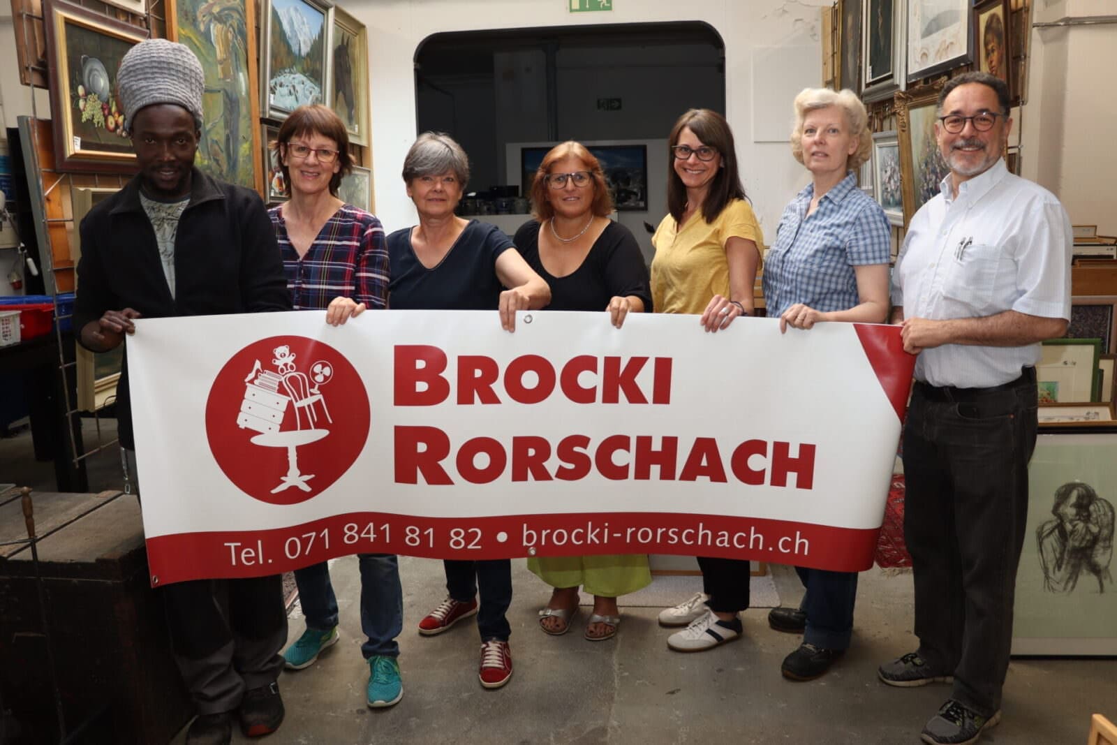 Die Rorschacher Brockenstube an der Säntisstrasse 7 erfreut sich grosser Beliebtheit. Das Beitragsbild zeigt das Team, welches dieses Brocki mit viel Engagement führt. Von links nach recht sind das Lamin Jobarethe, Monika Bader, Anita Jucker, Annette Humbel Gmünder, Melinda Pflugi, Astrid John und Alejandro Wiener.