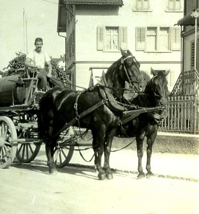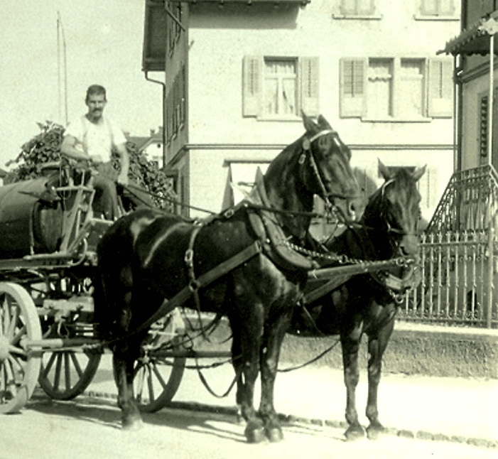 Einst mussten im Sommer unsere Strassen bewässert werden. Heute kaum mehr vorstellbar: An heissen Sommertagen war Strassenstaub eine fast unerträgliche Plage. Nur die Hauptstrassen waren asphaltiert oder mit „Bsetzisteinen“ gepflastert. Die staubigen Nebenstrassen wurden mit Wasser bespritzt.
