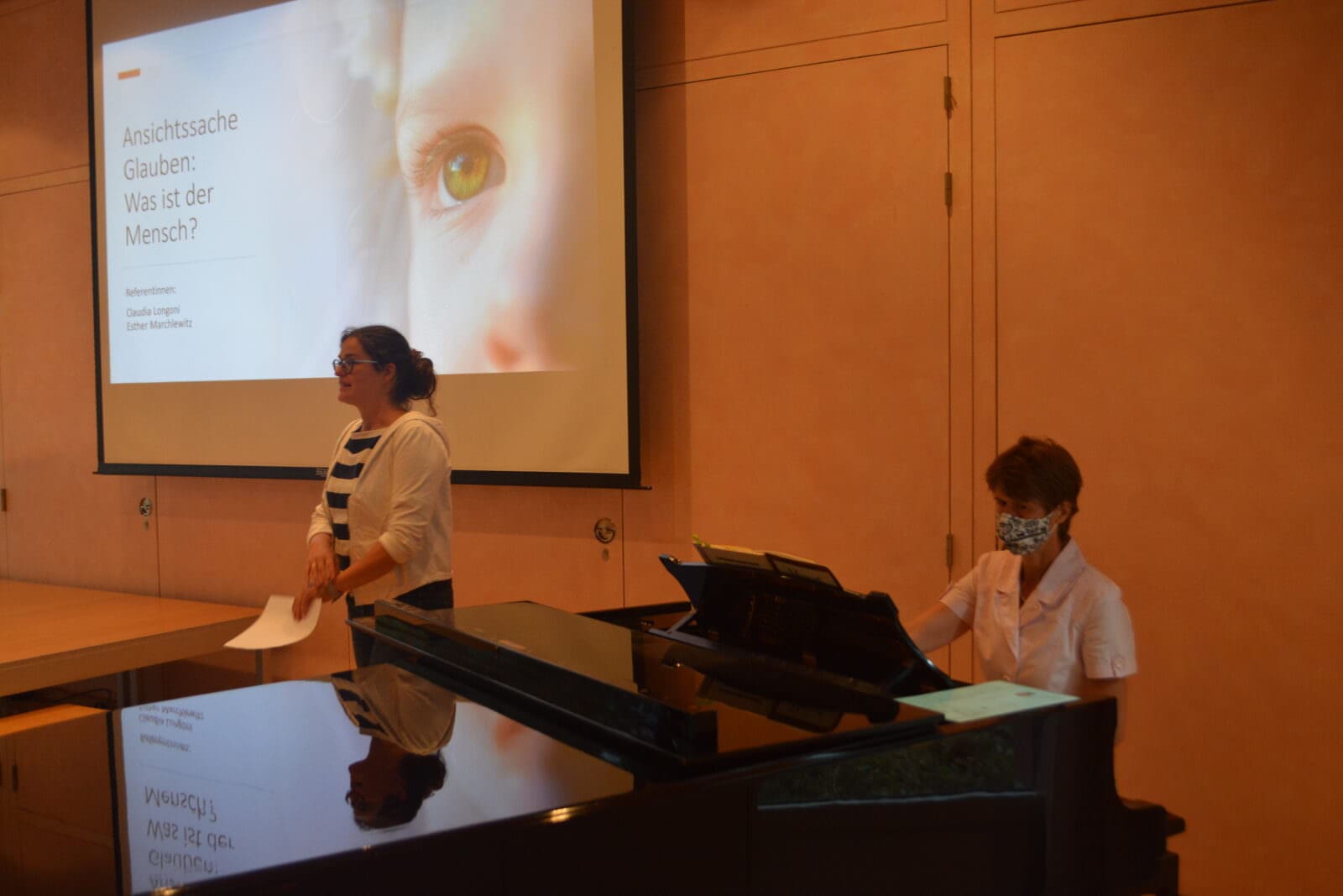 Gestern Dienstag begann im Kirchgemeindezentrum der evangelischen Kirchgemeinde Rorschach die Vortragsreihe „Ansichtssache Glauben“ mit dem sehr interessanten Thema „Was ist der Mensch“. Leider fanden nur sehr wenige Zuhörer den Weg ins EKZ, als Pfarrerin Esther Marchlewitz den Abend mit musikalischer Unterstützung von Ute Rendar um 19.30 Uhr eröffnete. Als Gastreferentin durfte sie Claudia Longoni als Erwachsenenbildnerin und bis vor Kurzem Spezialistin für Demenz im Pflegeheim PeLago begrüssen.