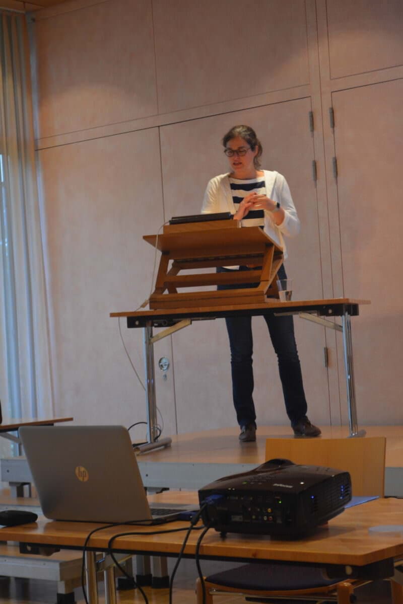 Im zweiten Teil sprach Claudia Longoni über ihre Erfahrungen mit Demenzpatienten. Sie betonte, dass alle Menschen frei und mit gleichen Rechten geboren werden. Unter Würde versteht sie Selbstbestimmung, die leider immer öfter vernachlässigt wird. Gerade Menschen, die an Demenz leiden, müssen lernen loszulassen und ihre Bedürfnisse umzustellen. Trotzdem leben Demenzkranke Menschen bis zu ihrem Tod mit Erinnerungen. Sie stellte fest, dass Demenzpatienten, die bereits ihre Sprache stark eingebüsst hatten, beim Beten plötzlich für kurze Zeit wieder sprechen konnten. „Wir müssen bedingungslose Würde anerkennen, denn sie wird uns von Gott gegeben. So kann ein gemeinsames Lachen sehr würdevoll sein und dem kranken Menschen ein Gefühl von Gemeinsamkeit und Dazugehörigkeit vermitteln.“