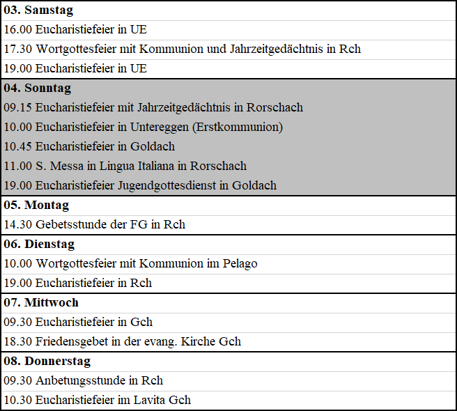 Gilt ab morgen Samstag bis kommenden Donnerstag, 8. Juli 2021. Mehr zum Angebot der Katholischen Kirche der Region Rorschach findet man auf der Webseite.