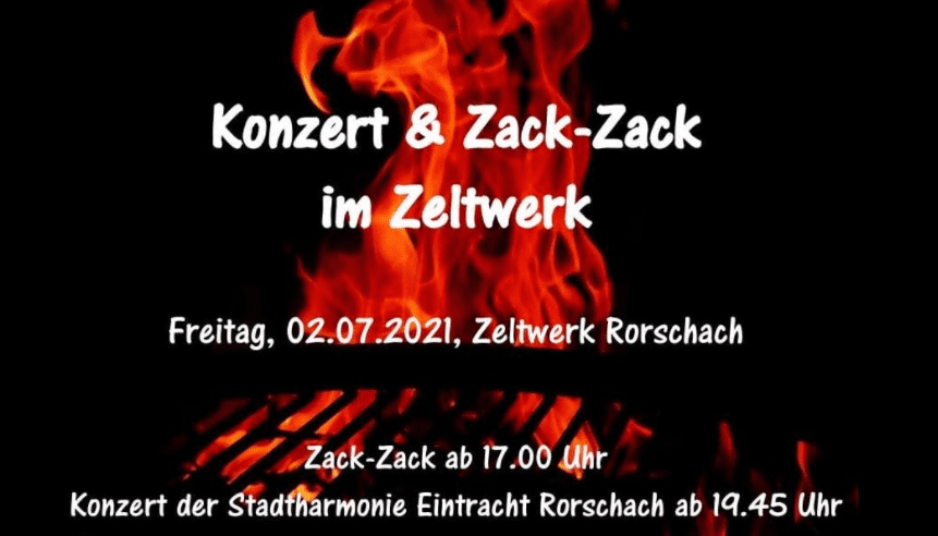 Das findet beim Zelt-Werk am Chabisplatz statt. Zack-Zack gibt es ab 17 Uhr. Das Konzert der Stadtharmonie Eintracht beginnt um 19.45 Uhr.