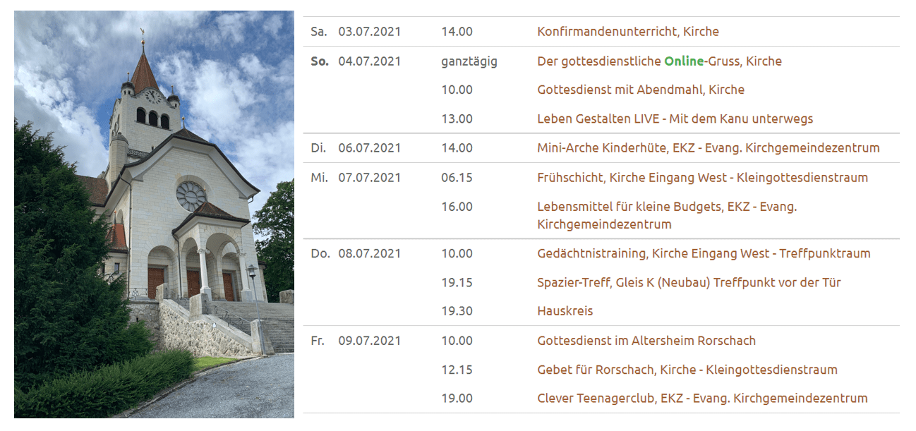 Frühschicht, Online-Gruess, SpazierTreff & KanufahrtThemen:KulturPartnerRef. RorschachRorschach 3. Juli 2021 - 05:15Mehr zum reichhaltigen Angebot der Evang.-ref. Kirchgemeinde Rorschach findet man auch auf der Homepage.Teilen mit: Einen Link per E-Mail an einen Freund senden (Wird in neuem Fenster geöffnet) E-Mail Drucken (Wird in neuem Fenster geöffnet) Drucken Auf Facebook teilen (Wird in neuem Fenster geöffnet) Facebook Auf X teilen (Wird in neuem Fenster geöffnet) X Auf WhatsApp teilen (Wird in neuem Fenster geöffnet) WhatsApp Gefällt mir:Gefällt mir Wird geladen …Newsletter abonnieren Bitte dieses Feld leer lassenBitte wähle, ob Du über jeden neuen Beitrag sofort oder lieber jeden Morgen gegen 9 Uhr eine Zusammenfassung der neusten Beiträge erhalten möchtest.Liste(n) auswählen: Neues vom Echo (Zusammenfassung) Neues vom Echo (Sofortbenachrichtigung) Dieses Feld wird benötigt.Prüfen Sie Ihren Posteingang und den Spamordner, um Ihr Abonnement zu bestätigen.