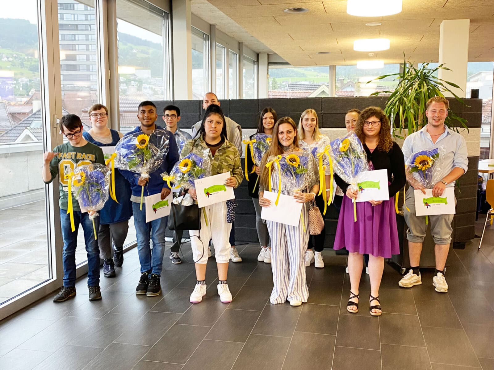 Der Eventraum des HPV Rorschach zeigte sich am 9. Juli festlich geschmückt. Sechs praktische Ausbildungen PrA nach INSOS, acht Berufsatteste EBA und ein eidgenössisches Fähigkeitszeugnis EFZ haben die jungen Berufsleute erreicht. Ihre Ausbildungen absolvierten sie in den Abteilungen Lackiererei, Hauswirtschaft, Logistik, Küche, Textilatelier, Industriemontage, Mechanik und Schreinerei des HPV Rorschach. Lediglich ein Absolvent hat das Qualifikationsverfahren nicht bestanden. Die meisten der jungen Berufsleute haben bereits eine Anschlusslösung im ersten oder zweiten Arbeitsmarkt gefunden. Neben den 18 Berufsabsolventinnen und -absolventen haben acht junge Menschen beim HPV Rorschach ihre Ausbildung in einem sozialen Beruf abgeschlossen.