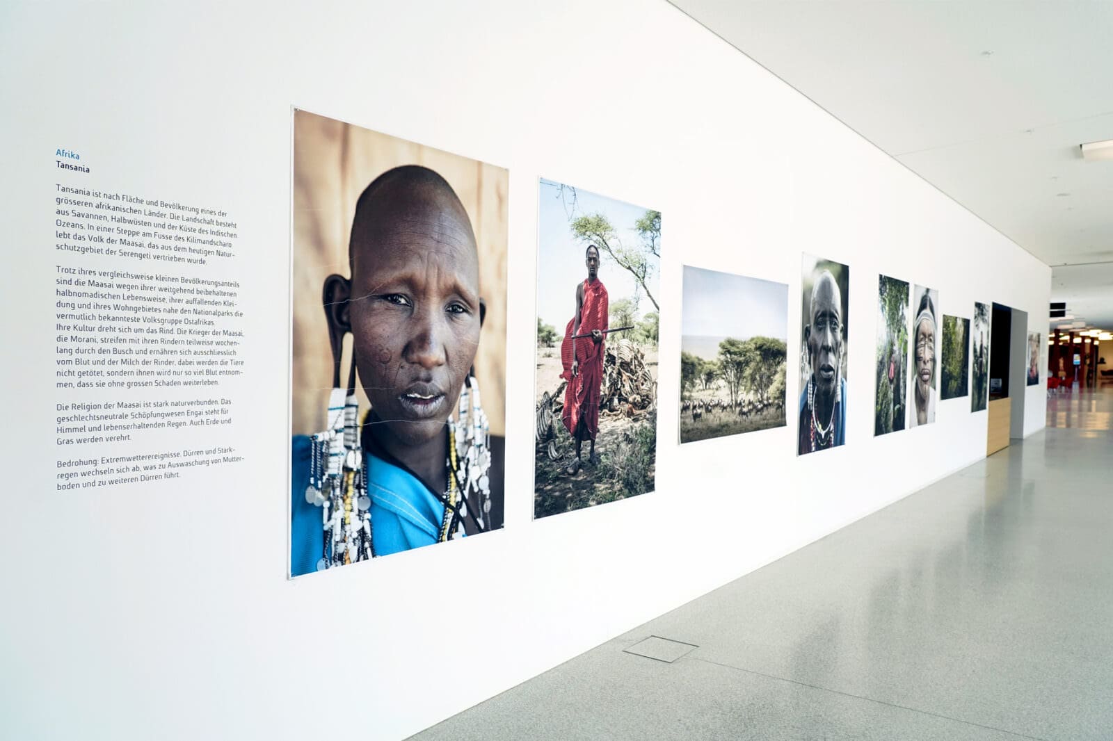 Der menschengemachte Klimawandel bedroht nicht nur massiv die Natur, Ökosysteme und Artenvielfalt, sondern vor allem auch die Menschen selbst. Seit über zehn Jahren widmet sich die Hamburger Künstlerin und Fotografin Barbara Dombrowski dem Thema, indem sie in einem weltweiten Foto‒Kunstprojekt Begegnungen indigener Völker aller fünf Kontinente und gegensätzlicher Klimazonen in Form von Installationen erzeugt. Im ersten Schritt brachte sie ihre Bilder nach Ost‒Grönland und in den Amazonas‒Regenwald in Ecuador und dadurch in einen Diskurs. Die beiden Regionen stehen stellvertretend für die Kontinente Amerika und Europa und wurden nach dem ersten Zyklus durch Besuche bei den Maasai in Tansania, mongolischen Nomaden und Nomadinnen in der Wüste Gobi und der mikronesischen Bevölkerung auf dem Inselatoll Kiribati ergänzt, die stellvertretend für die drei verbliebenen bewohnten Kontinente und die entsprechenden Klimazonen stehen. Durch die jahrelange Arbeit, die Begegnungen mit indigenen Völkern und den Kontakt mit ihren Schamanen konnte Barbara Dombrowski vielfältige Einblicke in deren Lebensrealitäten bekommen. Mit ihrer Ausstellung im Forum Würth Rorschach möchte sie zu Dialogen einladen und auf empathische Art veranschaulichen, dass der Klimawandel uns alle betrifft und dass alles zusammenhängt.