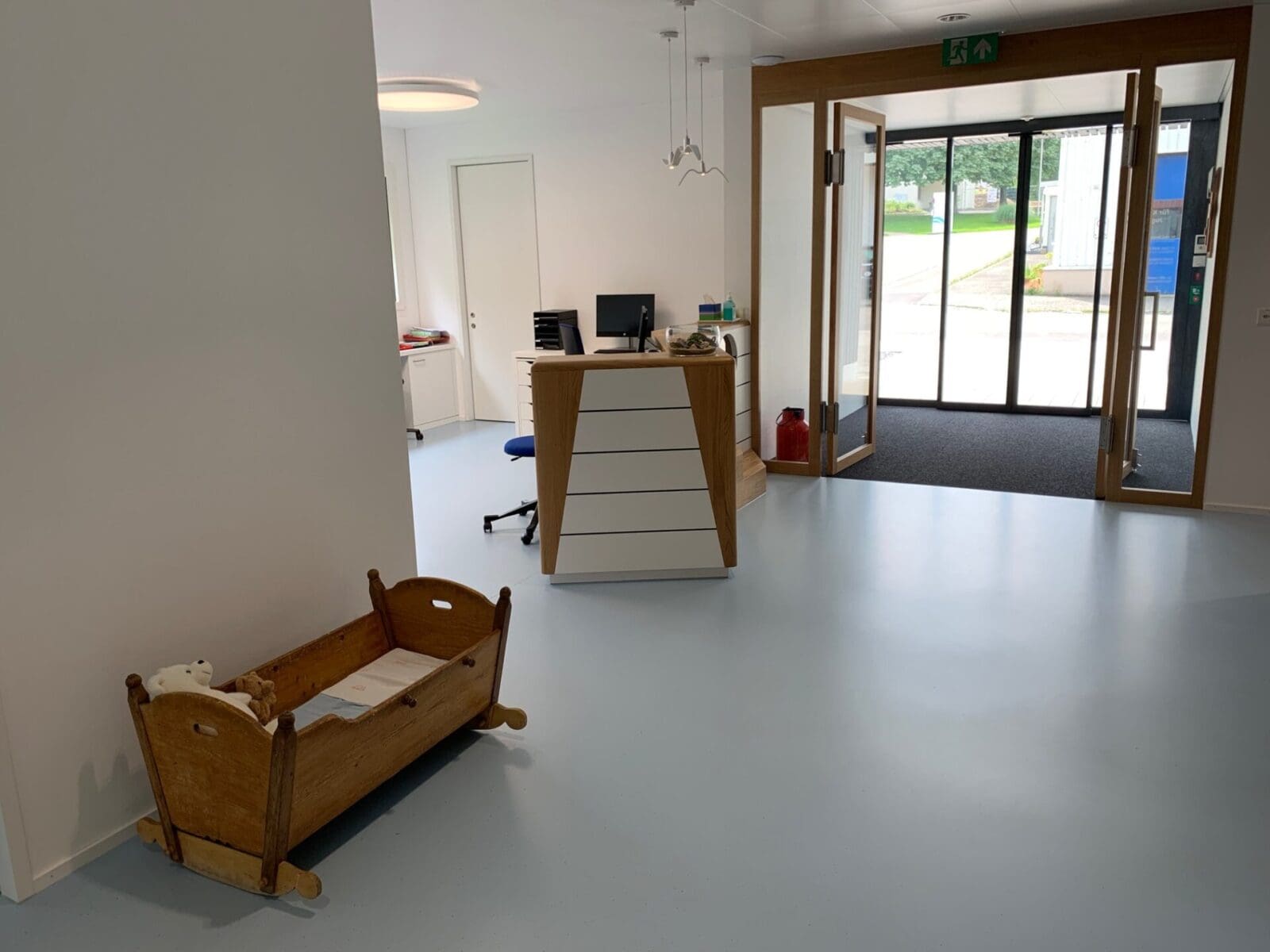 Seit einer Woche ist die neue Rorschacher Kinderarztpraxis beim Sportplatz Pestalozzi in Betrieb. Und so präsentiert sich die Praxis: