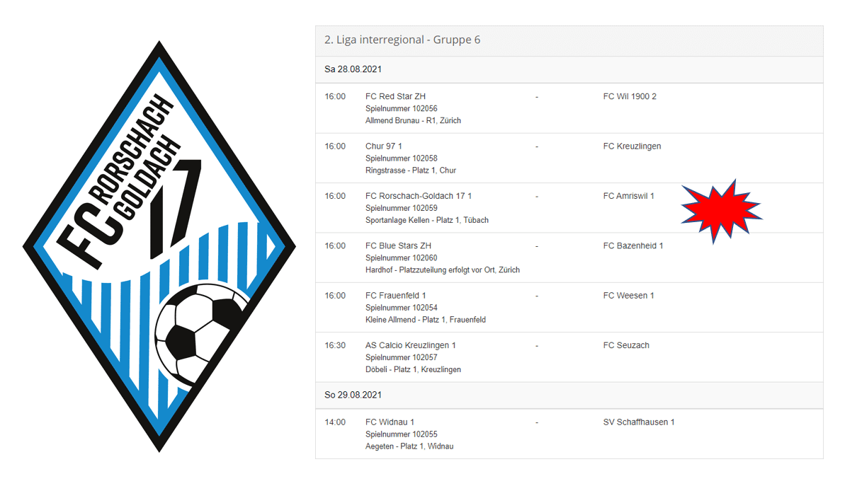 Der Fussballbetrieb auf dem Land nimmt langsam aber sicher Fahrt auf. Beim FC Rorschach-Goldach stehen ab heute Abend insgesamt 14 Teams im Einsatz. Morgen dann das erste Heimspiel der 2. Liga interregional-Mannschaft. Anpfiff auf Kellen gegen den FC Amriswil wird um 16 Uhr sein. Nachstehend alle Spiele im Überblick: