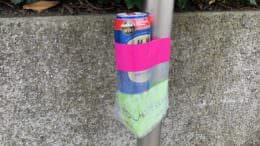 Und manchmal sind die Ideen auch sehr kreativ. So wie hier an der Wachsbleichestrasse an einer Bushaltestelle, wo ein Aschenbecher installiert wurde.