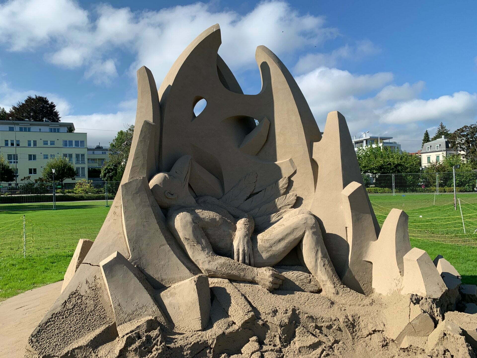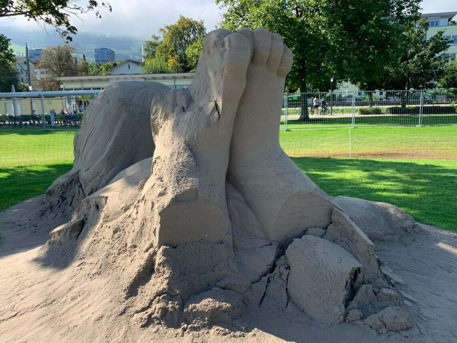 Ein Besuch auf der Arionwiese lohnt sich immer noch. Die hier gezeigten Bilder wurden gestern Vormittag aufgenommen. Das miese Wetter der letzten Tage hat wohl seine Spuren hinterlassen, aber die Skulpturen zeigen sich immer noch von ihrer faszinierenden – und vergänglichen – Seite. Die sandigen Wunderwerke sind noch bis am 12. September zu bestaunen.