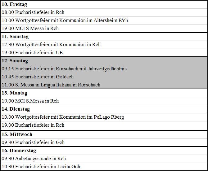 Gilt ab heute bis und mit Donnerstag,16. September 2021. Zusätzliche und weiterführende Informationen findet man immer auch auf der Homepage der Katholischen Kirche der Region Rorschach.