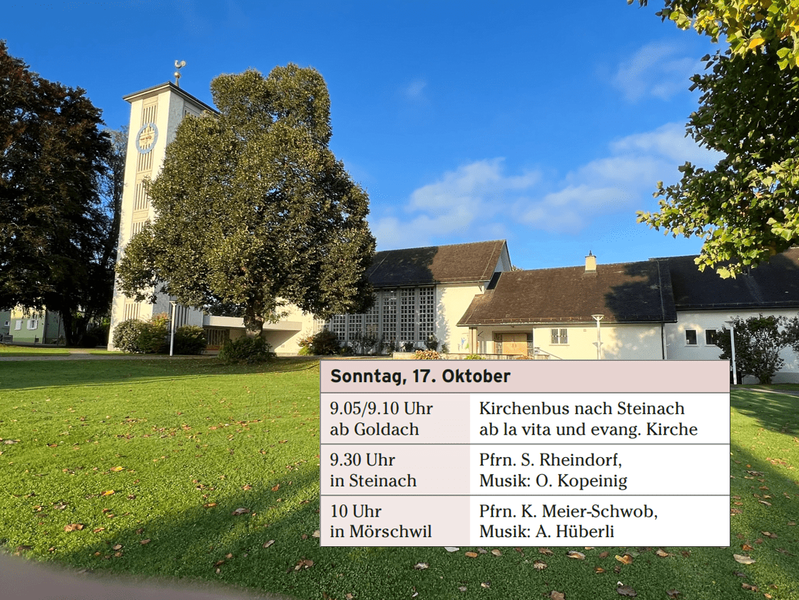 Das Angebot der Kirchgemeinde GoldachThemen:GoldachKulturPartnerRef. GoldachRegion 16. Oktober 2021 - 05:15Mehr Informationen findet man wie immer auf der Homepage der Evang.-ref. Kirchgemeinde Goldach. Und zum morgigen Gottesdienst in Steinach hier und für den Gottesdienst in Mörschwil hier.Teilen mit: Klicken, um einem Freund einen Link per E-Mail zu senden (Wird in neuem Fenster geöffnet) E-Mail Klicken zum Ausdrucken (Wird in neuem Fenster geöffnet) Drucken Klick, um auf Facebook zu teilen (Wird in neuem Fenster geöffnet) Facebook Klicke, um auf X zu teilen (Wird in neuem Fenster geöffnet) X Klicken, um auf WhatsApp zu teilen (Wird in neuem Fenster geöffnet) WhatsApp Gefällt mir:Gefällt mir Wird geladen …Newsletter abonnieren Bitte dieses Feld leer lassenBitte wähle, ob Du über jeden neuen Beitrag sofort oder lieber jeden Morgen gegen 9 Uhr eine Zusammenfassung der neusten Beiträge erhalten möchtest.Liste(n) auswählen: Neues vom Echo (Zusammenfassung) Neues vom Echo (Sofortbenachrichtigung) Dieses Feld wird benötigt.Prüfen Sie Ihren Posteingang und den Spamordner, um Ihr Abonnement zu bestätigen.