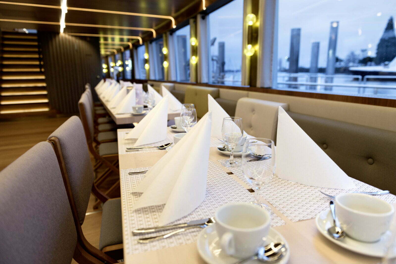 Morgen Sonntag, 17. Oktober 2021, können sich Interessierte bei einem reichhaltigen Brunch auf dem glamourösen MS Säntis verwöhnen lassen. Gemäss dem Motto: «Die Yacht für einen Tag» erfuhr das 60-jährige Motorschiff «Säntis» von Januar bis Ende April 2017 eine Rundum-Sanierung. Die reduzierte Architektursprache mit edlen Materialien wie Kirschholz und Messing schlägt die Brücke zwischen nostalgischem Kursschiff und dem Gefühl der modernen Luxus-Yacht. Moderne Kristallleuchten an Wänden und Decke schaffen ein glamouröses Ambiente. Man darf sich faszinieren lassen!