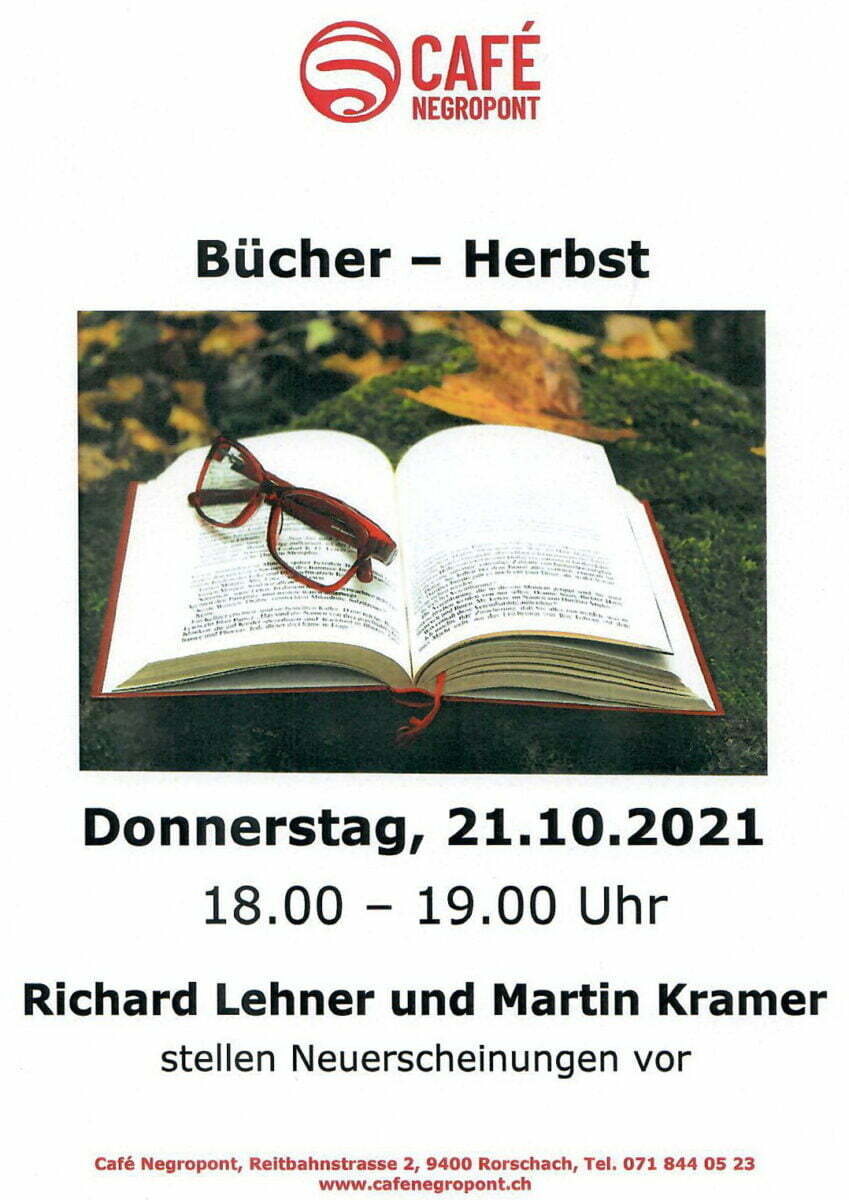 Im Negropont werden neue Bücher vorgestelltThemen:KulturRorschach 21. Oktober 2021 - 05:18Heute zwischen 18 und 19 Uhr stellen Richi Lehner und Martin Kramer Neuerscheinungen auf dem Büchermarkt vor.Teilen mit: Einen Link per E-Mail an einen Freund senden (Wird in neuem Fenster geöffnet) E-Mail Drucken (Wird in neuem Fenster geöffnet) Drucken Auf Facebook teilen (Wird in neuem Fenster geöffnet) Facebook Auf X teilen (Wird in neuem Fenster geöffnet) X Auf WhatsApp teilen (Wird in neuem Fenster geöffnet) WhatsApp Gefällt mir:Gefällt mir Wird geladen …Newsletter abonnieren Bitte dieses Feld leer lassenBitte wähle, ob Du über jeden neuen Beitrag sofort oder lieber jeden Morgen gegen 9 Uhr eine Zusammenfassung der neusten Beiträge erhalten möchtest.Liste(n) auswählen: Neues vom Echo (Zusammenfassung) Neues vom Echo (Sofortbenachrichtigung) Dieses Feld wird benötigt.Prüfen Sie Ihren Posteingang und den Spamordner, um Ihr Abonnement zu bestätigen.