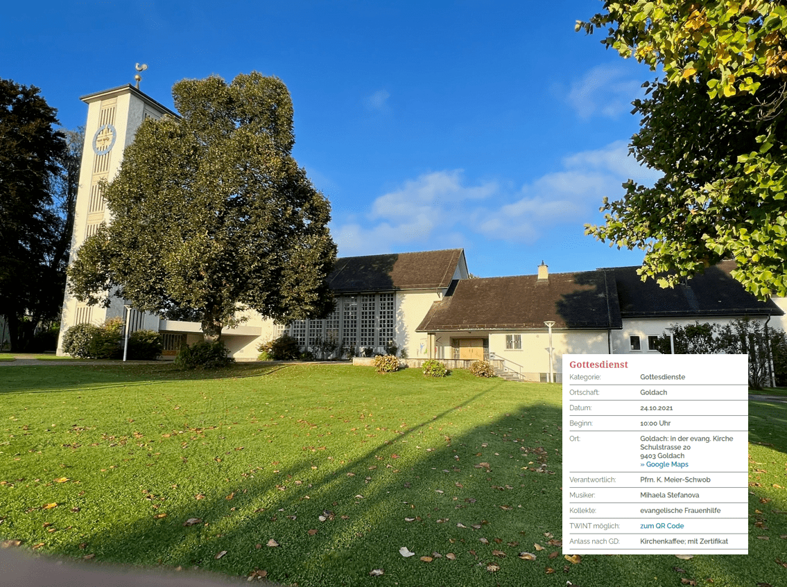 Das Angebot der Evangelischen Kirche GoldachThemen:GoldachKulturPartnerRef. GoldachRegion 23. Oktober 2021 - 05:18Gottesdienst morgen Sonntag in Goldach. Mehr Informationen zum vielfältigen Angebot der Kirchgemeinde Goldach finden Interessierte auf der Homepage.Teilen mit: Einen Link per E-Mail an einen Freund senden (Wird in neuem Fenster geöffnet) E-Mail Drucken (Wird in neuem Fenster geöffnet) Drucken Auf Facebook teilen (Wird in neuem Fenster geöffnet) Facebook Auf X teilen (Wird in neuem Fenster geöffnet) X Auf WhatsApp teilen (Wird in neuem Fenster geöffnet) WhatsApp Gefällt mir:Gefällt mir Wird geladen …Newsletter abonnieren Bitte dieses Feld leer lassenBitte wähle, ob Du über jeden neuen Beitrag sofort oder lieber jeden Morgen gegen 9 Uhr eine Zusammenfassung der neusten Beiträge erhalten möchtest.Liste(n) auswählen: Neues vom Echo (Zusammenfassung) Neues vom Echo (Sofortbenachrichtigung) Dieses Feld wird benötigt.Prüfen Sie Ihren Posteingang und den Spamordner, um Ihr Abonnement zu bestätigen.