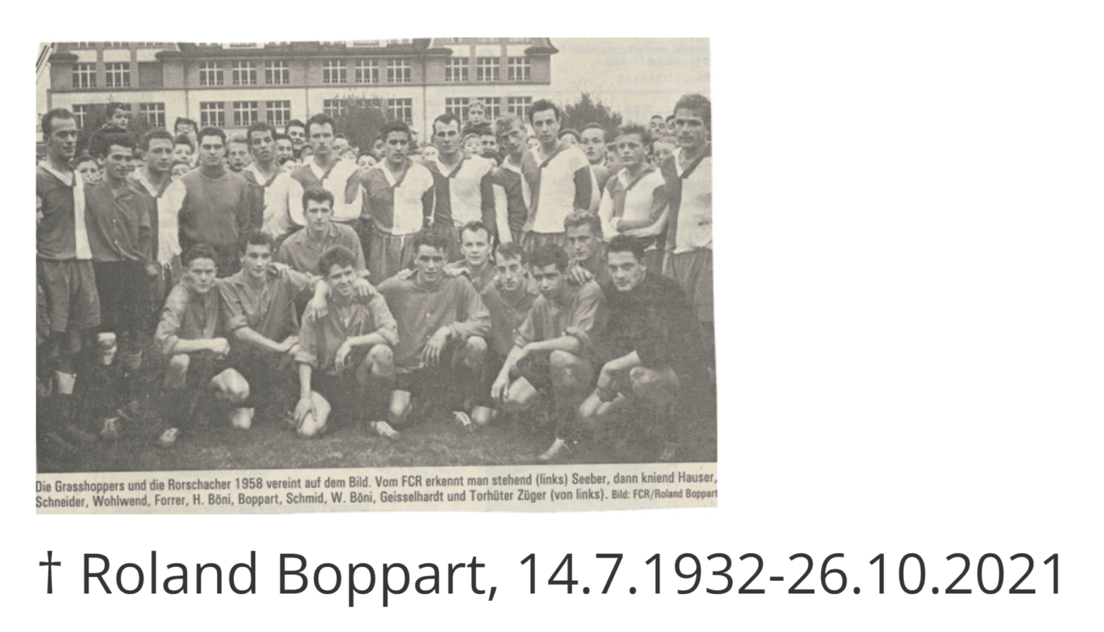 Roli Boppart ist diese Woche verstorben. Der FC RG 17 würdigt das Verdienst des Ehrenmitgliedes auf seiner Homepage. Der Familie gilt die tiefe Anteilnahme.
