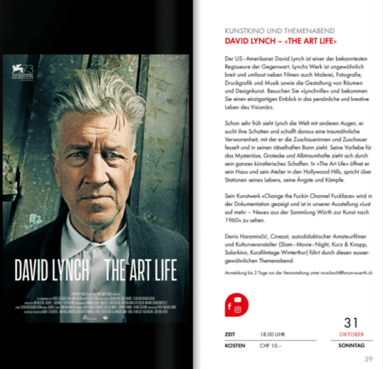 Kommenden Sonntag im Würth Haus in Rorschach: DAVID LYNCH ‒ «THE ART LIFE»