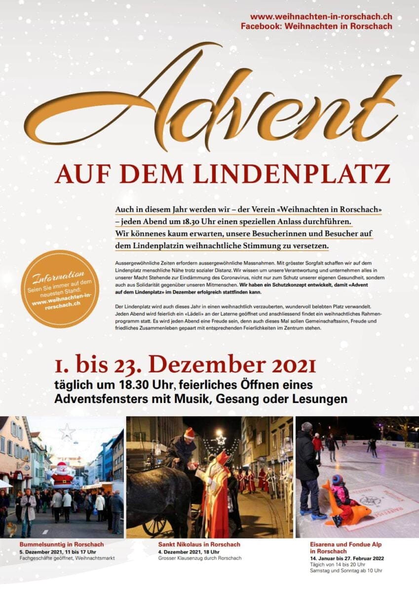 In den nächsten Tagen wird dieser Flyer in den Briefkästen der Stadt Rorschach und den Gemeinden Goldach, Rorschacherberg und Tübach zu finden sein. Mehr Infos gibt es auch hier. Die Laterne auf dem Lindenplatz wird morgen Abend aufgebaut.