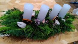 Das Ganze wurde gestern Nachmittag als Erlebnisprogramm angepriesen und der Weg zum fertigen Adventskranz ist hier bildlich festgehalten. Und heute wird die erste Kerze angezündet.