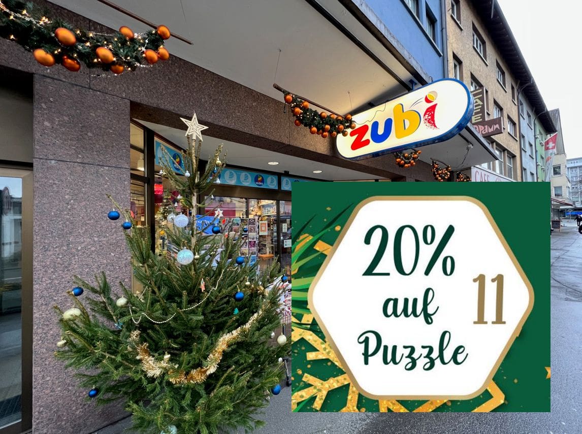 20 % gibt es heute Samstag, 11. Dezember 2021, bei Zubi Spielwaren an der Hauptstrasse 89 in Rorschach auf alle Puzzle. Bis Weihnachten gibt es hier an den Werktagen immer eine neue Aktion. Die Angebote gelten, solange der Vorrat reicht.