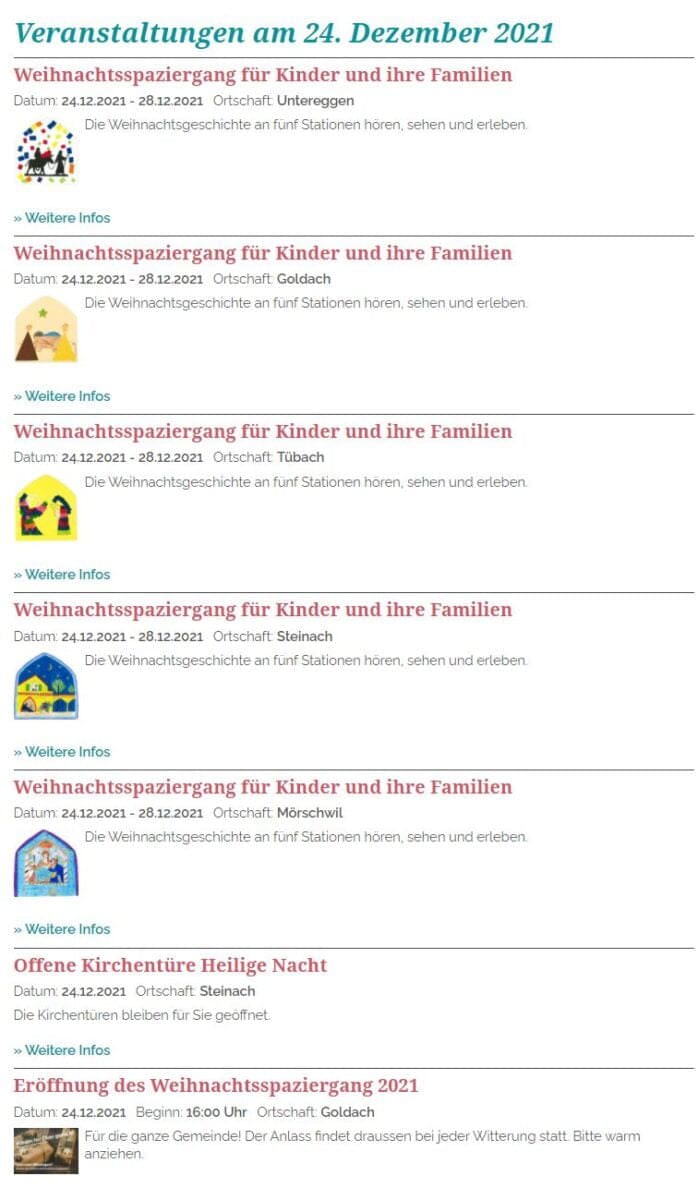 Das Weihnachtsprogramm in der Evangelischen Kirchgemeinde Goldach und Umgebung sieht wie folgt aus: