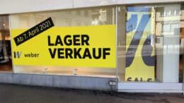 Die Schaufensterplakate beim ehemaligen C&A machen seit Tagen darauf aufmerksam. Morgen Mittwoch startet der Mode Weber-Lagerverkauf.