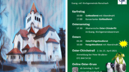 Eucharistiefeiern finden in Rorschach (09.15 Uhr, aber bereits ausgebucht. Gottesdienst wird live gestreamt), Goldach (10.45 Uhr, aber bereits ausgebucht) und Untereggen (ebenfalls 10.45 Uhr) statt. Zudem um 11.00 Uhr in…