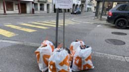 Fotografiert von einer Rorschacher Echo-Leserin am Samstagnachmittag so um 16 Uhr. Vorgesehen wäre eigentlich, dass man die Kehrichtsäcke heute erst am Abend bereitstellt. Die entsprechenden Hinweise wären ja vorhanden. Aber…