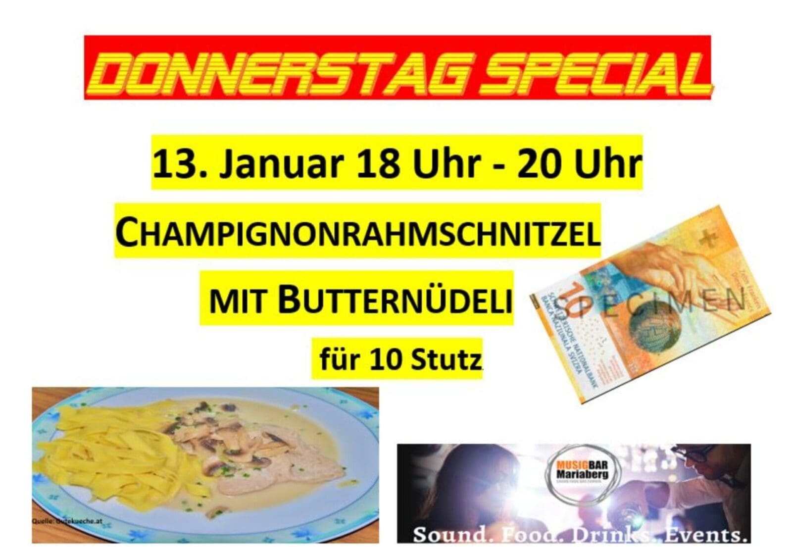 Wie hier im Rorschacher Echo bereits angekündigt, bekommt Rorschach seinen Frühschoppen zurück. Erstmals wird das am Sonntag, 30. Januar 2022, ab 09.30 Uhr der Fall sein. Und das Mariaberg hatte vor einiger Zeit ja auch eine ganz spezielle Frühschoppen-Kultur. Aber bis es soweit ist wird man sich in der Musigbar Mariaberg mit den aktuellen Hits begnügen. Wie beispielsweise morgen das Menü für 10 Franken: