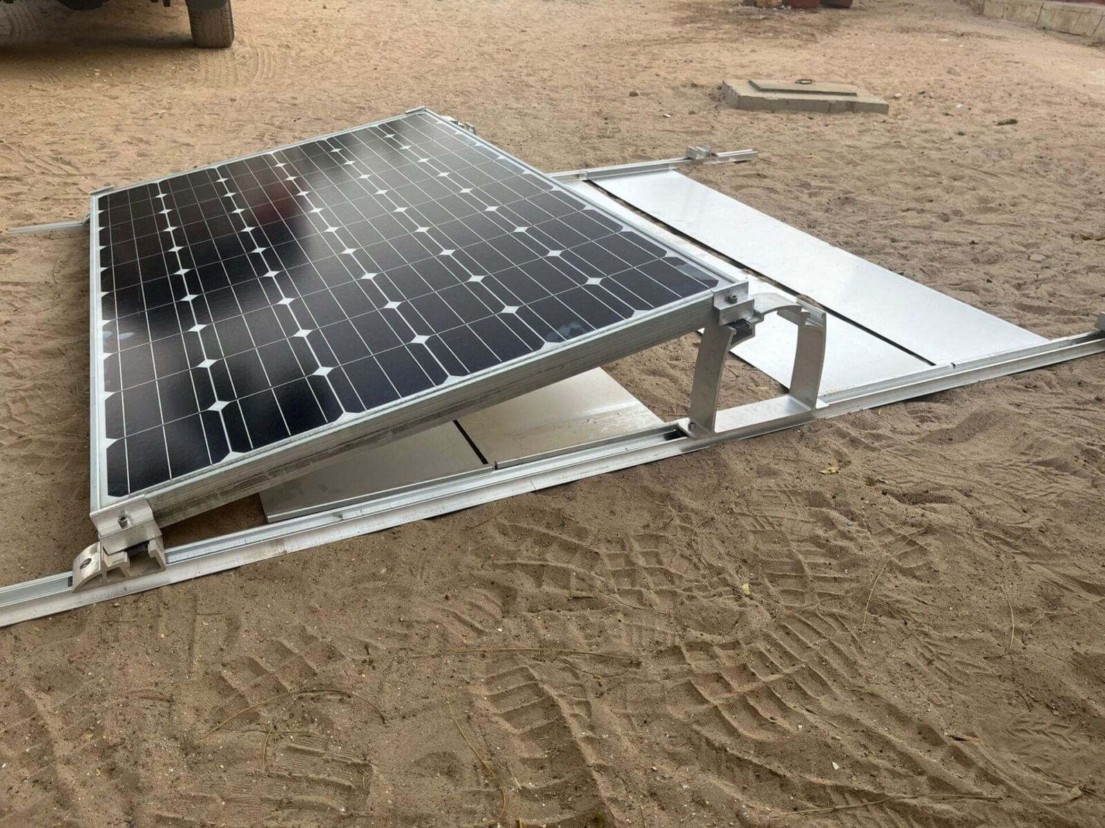 Und die bisher hier gezeigten und auch die noch folgenden Bilder vom Arbeitseinsatz stammen von Patrick Spiess. Hier seine neusten Fotos. Gestern wurden rund 16 Tonnen Kies auf das Dach der Geburtsstation gehievt. Zeit für die Jungs, sich zusammen mit Walter Burgermeister von der Geschäftsstelle des Vereins „Senegalhilfe“ etwas im Dorf umzusehen. Das Beitragsbild oben zeigt das Mustermodul auf dem Dach. Heute werden die Original verlegt.