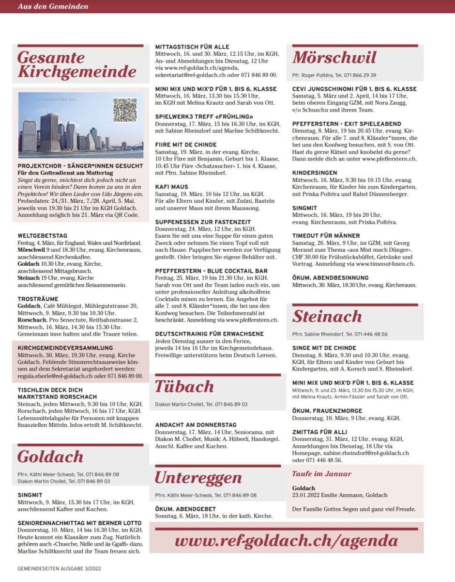 Das Angebot von Ref. Goldach im März 2022Themen:GoldachKulturPartnerRef. GoldachRegion 26. Februar 2022 - 05:10Weiterführende Informationen findet man immer auch auf der Homepage. Das Angebot von heute Samstag findet man hier, jenes von morgen Sonntag hier. Teilen mit: Einen Link per E-Mail an einen Freund senden (Wird in neuem Fenster geöffnet) E-Mail Drucken (Wird in neuem Fenster geöffnet) Drucken Auf Facebook teilen (Wird in neuem Fenster geöffnet) Facebook Auf X teilen (Wird in neuem Fenster geöffnet) X Auf WhatsApp teilen (Wird in neuem Fenster geöffnet) WhatsApp Gefällt mir:Gefällt mir Wird geladen …Newsletter abonnieren Bitte dieses Feld leer lassenBitte wähle, ob Du über jeden neuen Beitrag sofort oder lieber jeden Morgen gegen 9 Uhr eine Zusammenfassung der neusten Beiträge erhalten möchtest.Liste(n) auswählen: Neues vom Echo (Zusammenfassung) Neues vom Echo (Sofortbenachrichtigung) Dieses Feld wird benötigt.Prüfen Sie Ihren Posteingang und den Spamordner, um Ihr Abonnement zu bestätigen.