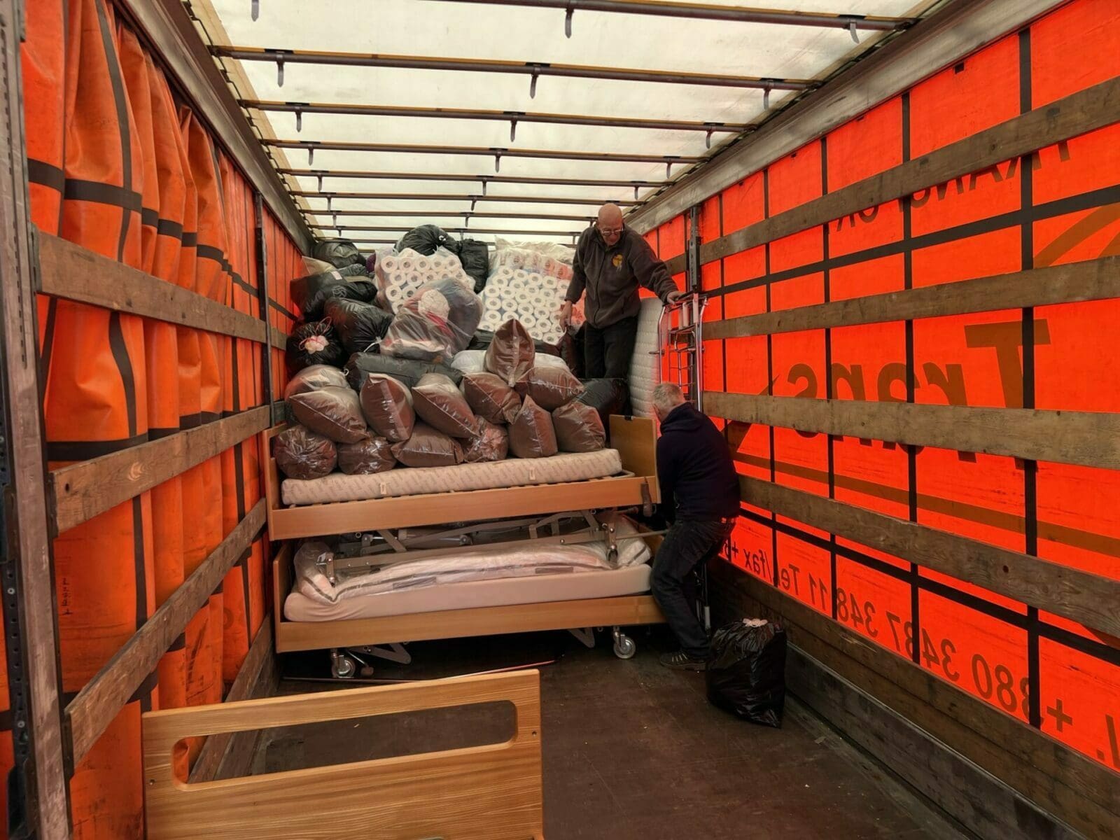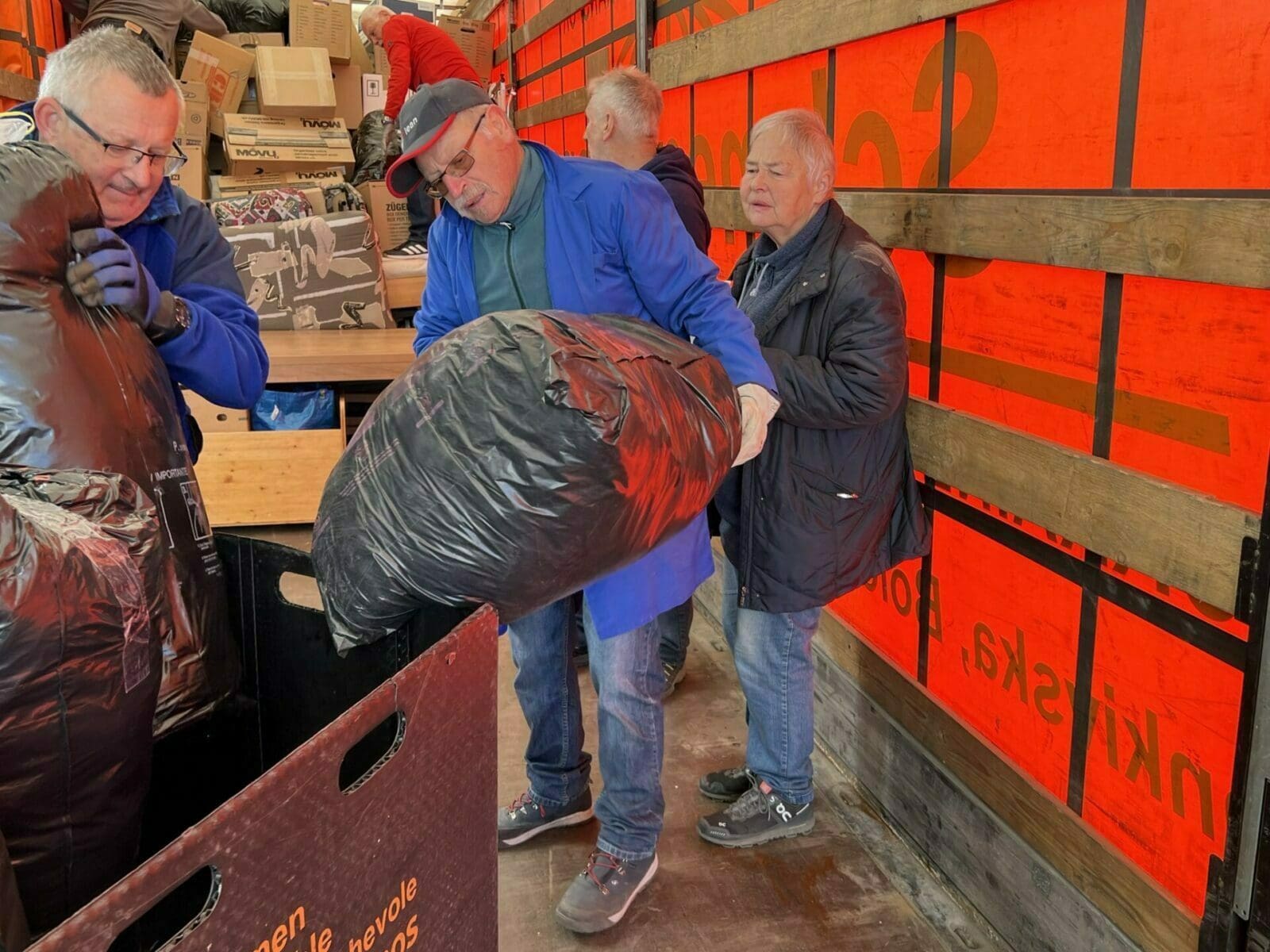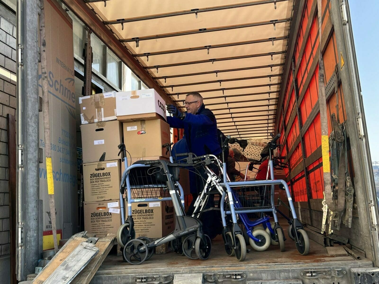 Die Sammelaktion von Astrid Eisenring für die notleidende Bevölkerung in Osteuropa hat alle Erwartungen übertroffen. Heute Vormittag wurde mit dem Verladen der Hilfsgüter auf einen ukrainischen LKW begonnen. Gegen Mittag waren mit rund 20 Tonnen der halbe LKW beladen. Aktuell wird fertig geladen und dann fährt der LKW mit rund 40 Tonnen Hilfsgütern in Richtung West-Ukraine los. Astrid Eisenring wird pausenlos über die Reise informiert und hier auch informieren, wann die Sachen aus unserer Region am Ziel eingetroffen sind. Hier einige Bilder von heute Morgen.