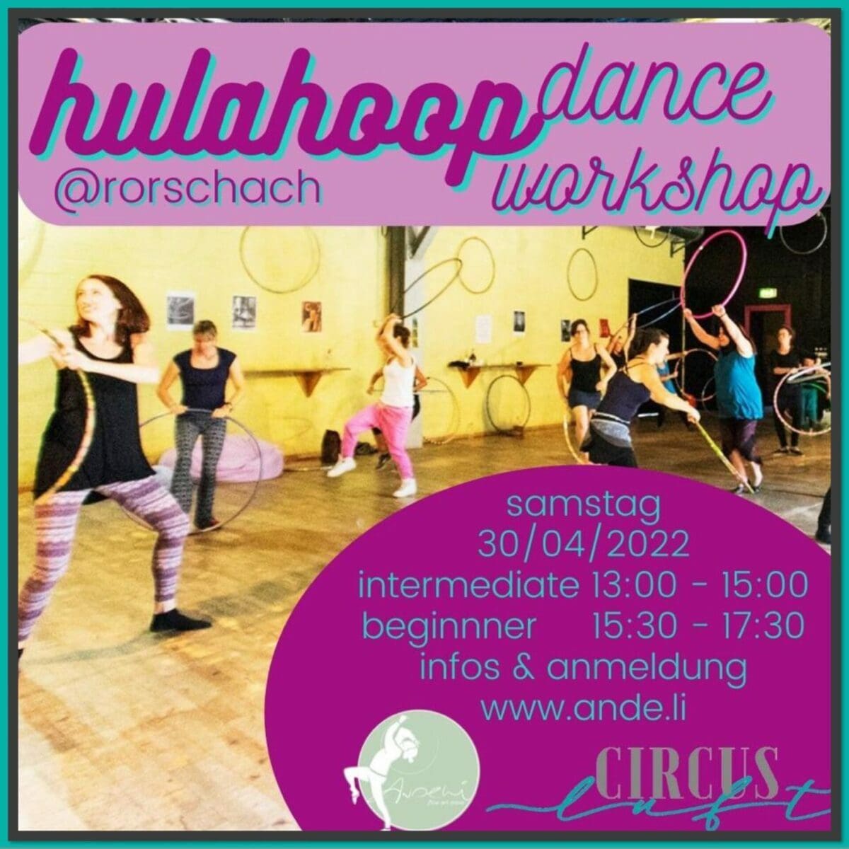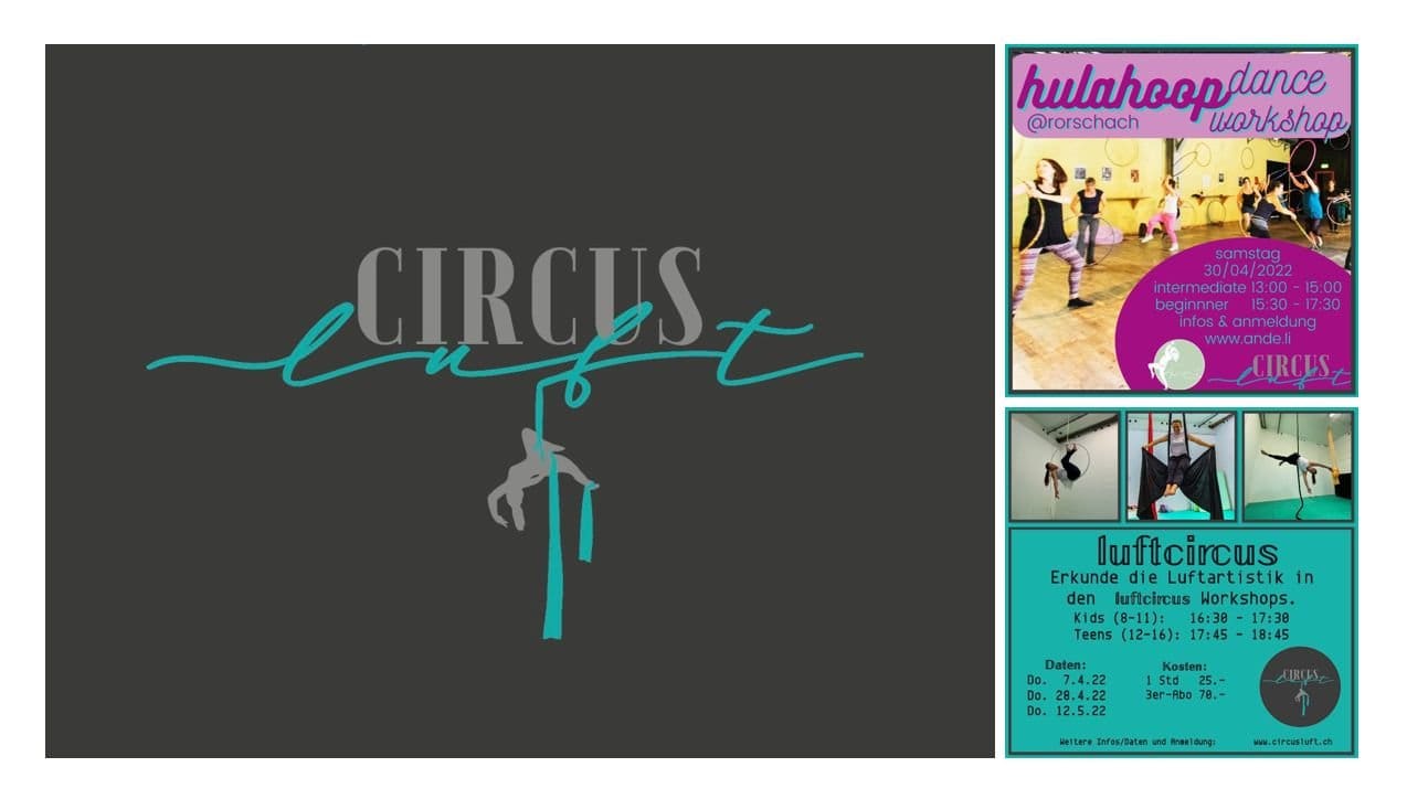 News von Siri Koller mir ihrem circusluft.ch. Leider musste der letzte HulaHoopDance-Workshop von Andeli (www.andel.li) abgesagt werden. Die Initiantinnen freuen sich dafür umso mehr auf das Ersatzdatum 30.04.22 – es hat noch freie Plätze! Heute startet der Workshop „Luftartistik“. Weitere Infos, Workshops & Kurse auf www.circusluft.ch