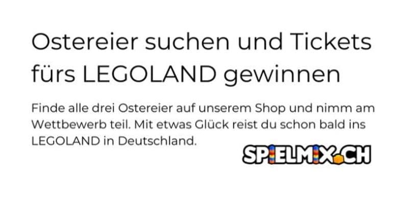 Bis Ostern läuft bei spielmix.ch noch ein Gewinnspiel. Auf der Website kann man drei Eier suchen und anschliessend das Lösungswort zusammenstellen. Unter allen korrekten Antworten werden 1 x 4 Tickets ins LEGO Land Deutschland verlost.