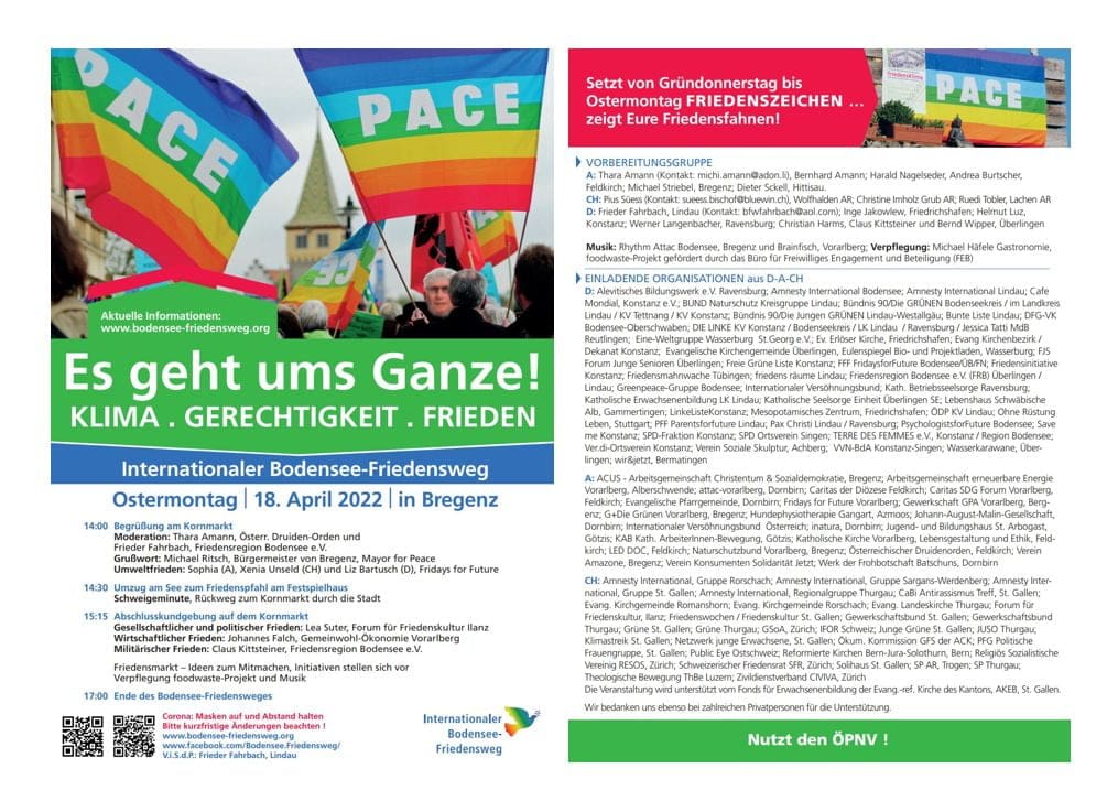 Der Internationale Bodensee-Friedensweg hat vor vielen Jahren in Rorschach Halt gemacht. Dieses Jahr ist Bregenz das Ziel. Und nach wie vor mitten bei den Organisatoren dabei ist der Rorschacher Arne Engeli. Am Ostermontag mit einer Botschaft, die aktueller nicht sein kann…