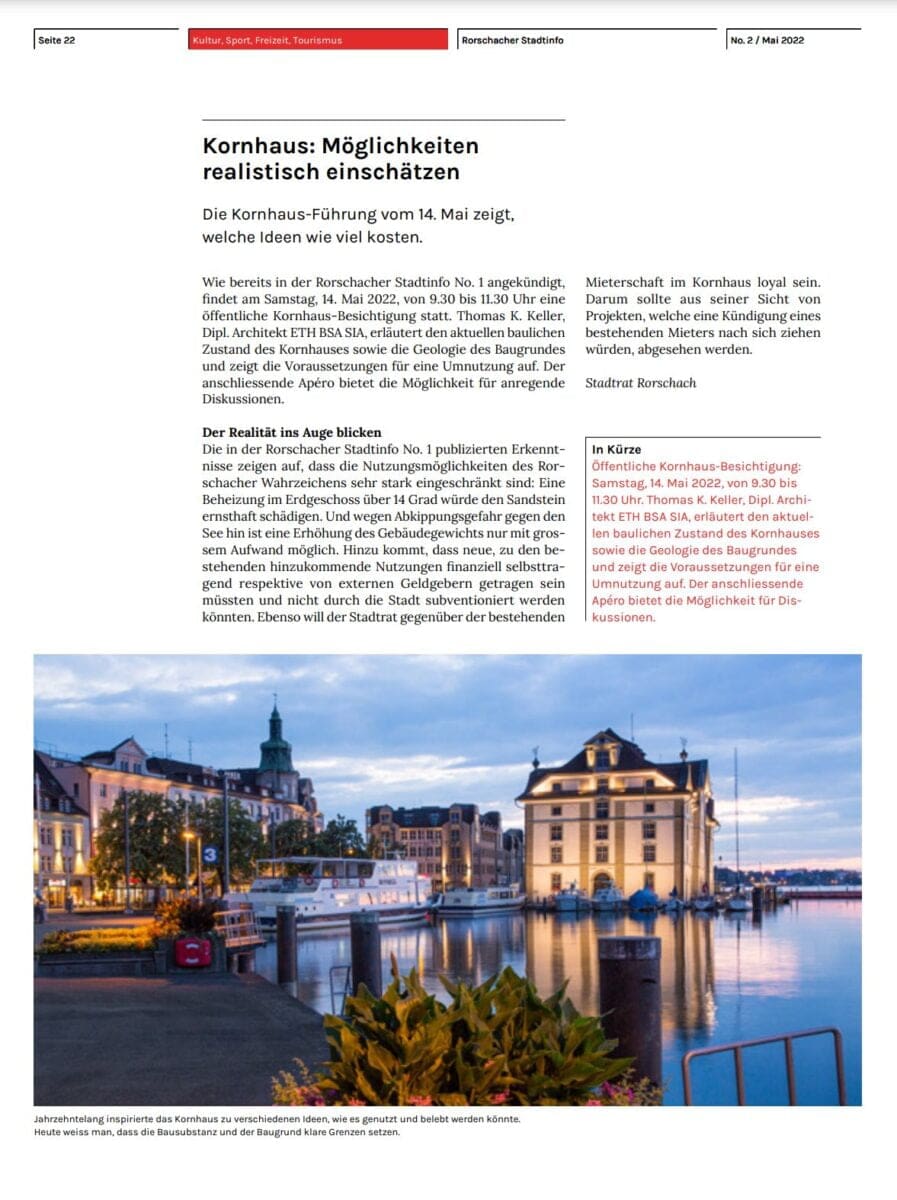 Morgen erfahren wir bei der Kornhaus-Führung zwischen 09:30 und 11:30 Uhr, welche Ideen wie viel kosten. Weitere Infos findet man unten. Das Rorschacher Echo wird vor Ort sein.