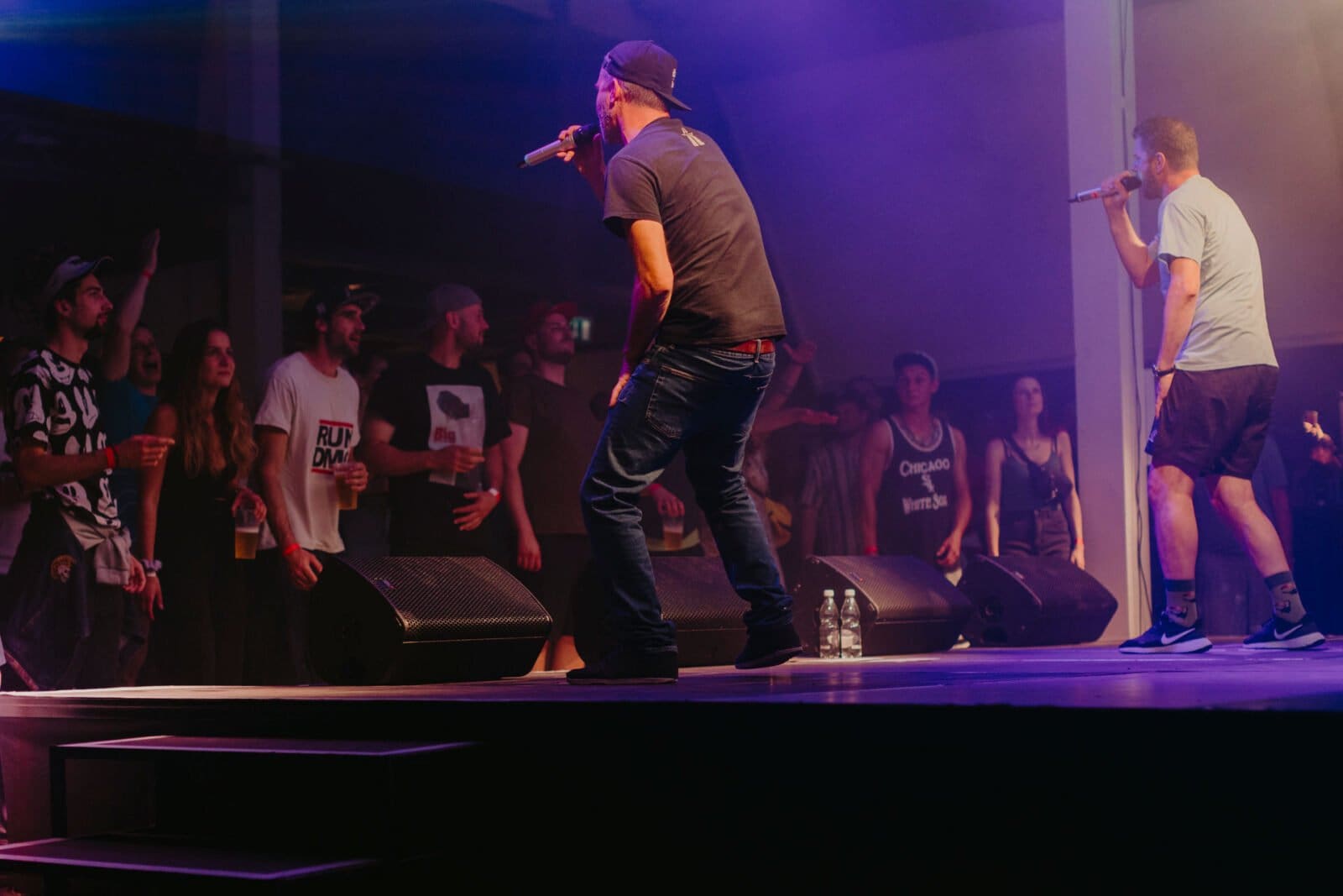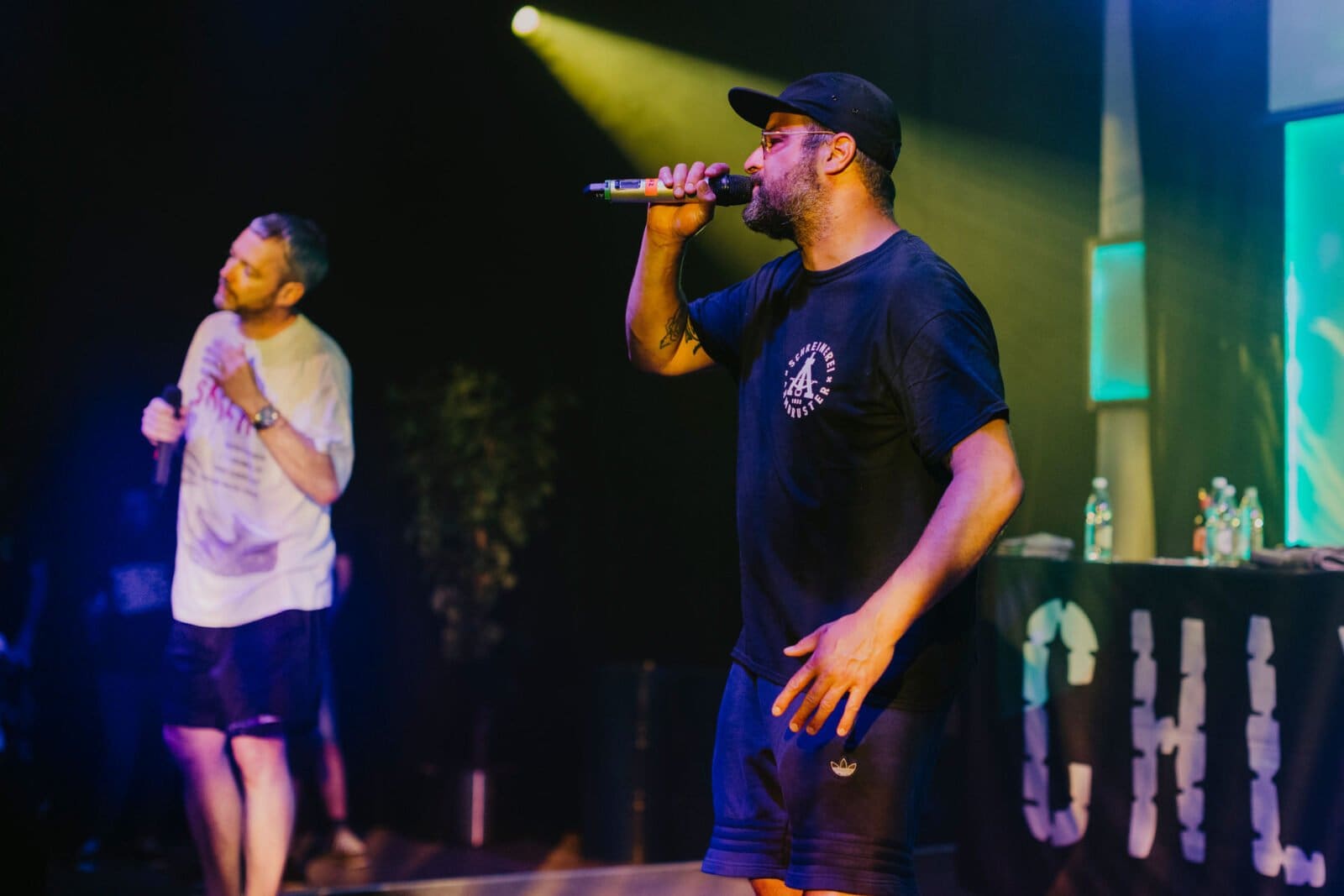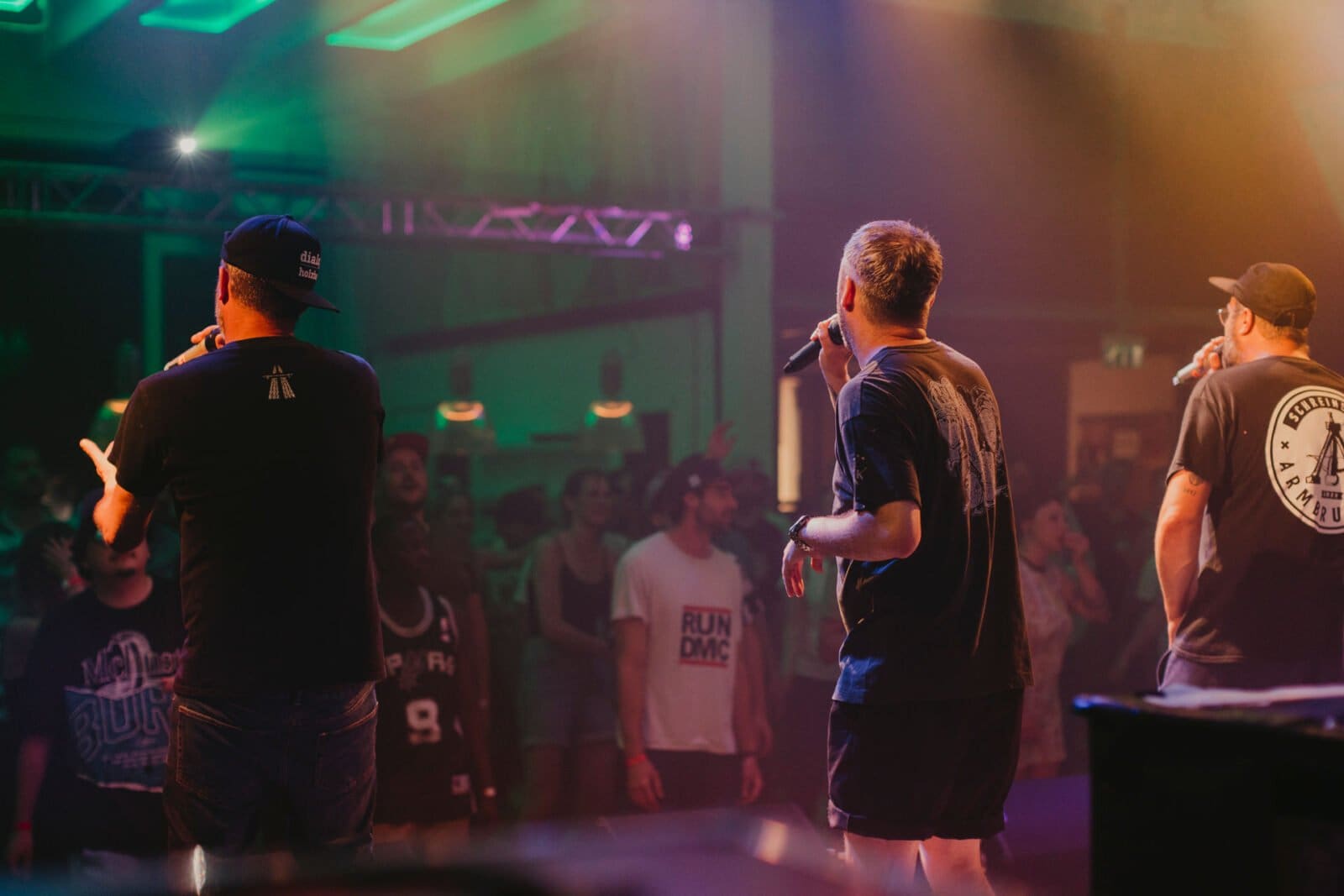 Drei Generationen von Rap-Fans waren am Freitagabend gleichzeitig in der schön gefüllten INDUSTRIE36 am hiphoppen und abfeiern: Das gut gelaunte und gut gealterte All- und Altstars-Konglomerat Chlyklass, vor rund 20 Jahren das erste grosse Schweizer Rap-Ding, liess sich vom begeisterten Publikum mittragen. Auch wenn Greis und Baze die Hauptfiguren der Kombo sind, bekamen alle Mitglieder ihre Momente in einer gelungenen Mischung aus alten und neuen Songs. Angeheizt wurde das Publikum von Rapture Boy, Crispy Dee und Raboose. Alle hier gezeigten Bilder hat Stefan Beusch gemacht. Die Bildrechte liegen bei ihm. Herzlichen Dank.