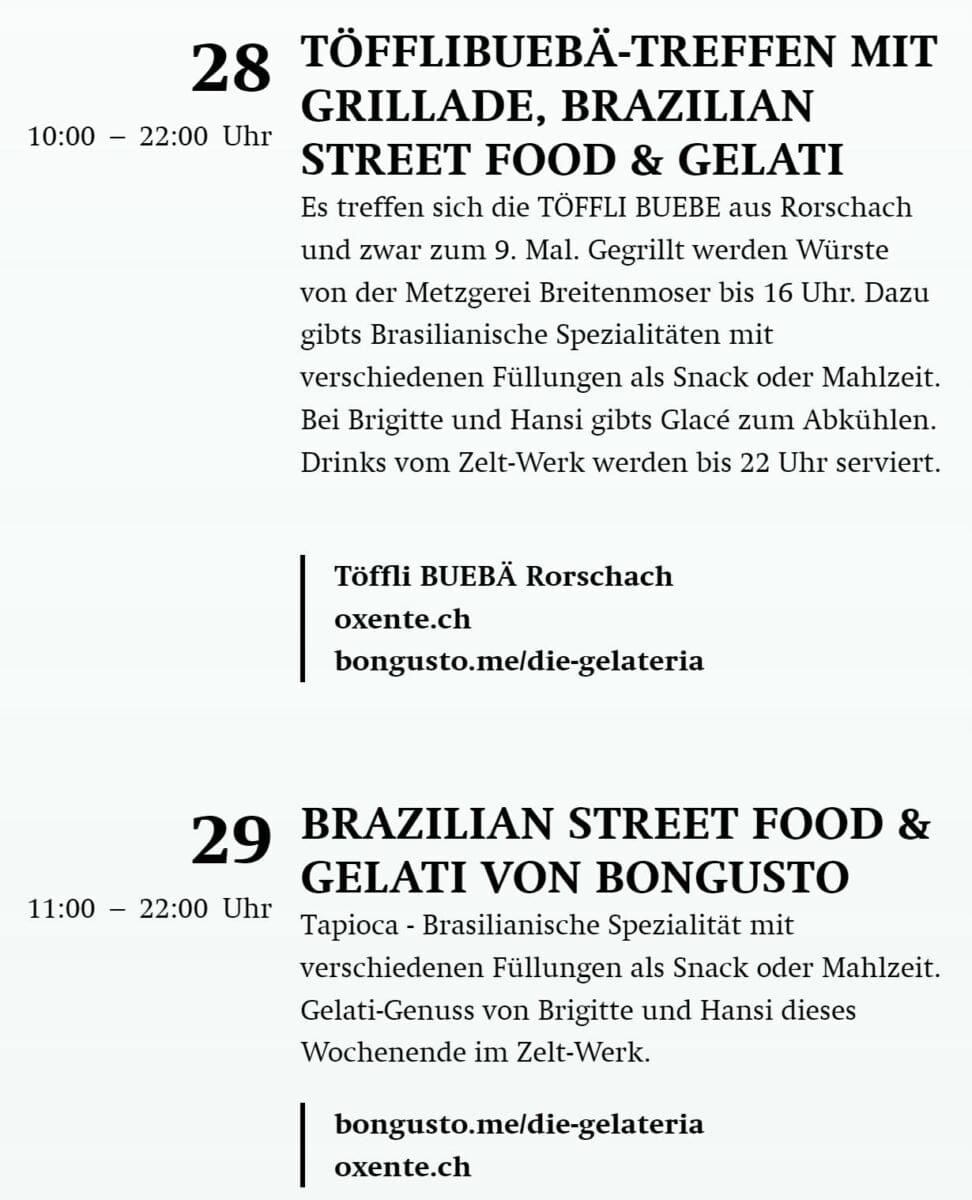 Heute ab 15 Uhr mit Spezialitäten aus Brasilien so nach dem Motto: Die Welt zu Besuch in der Rorschacher Bucht…