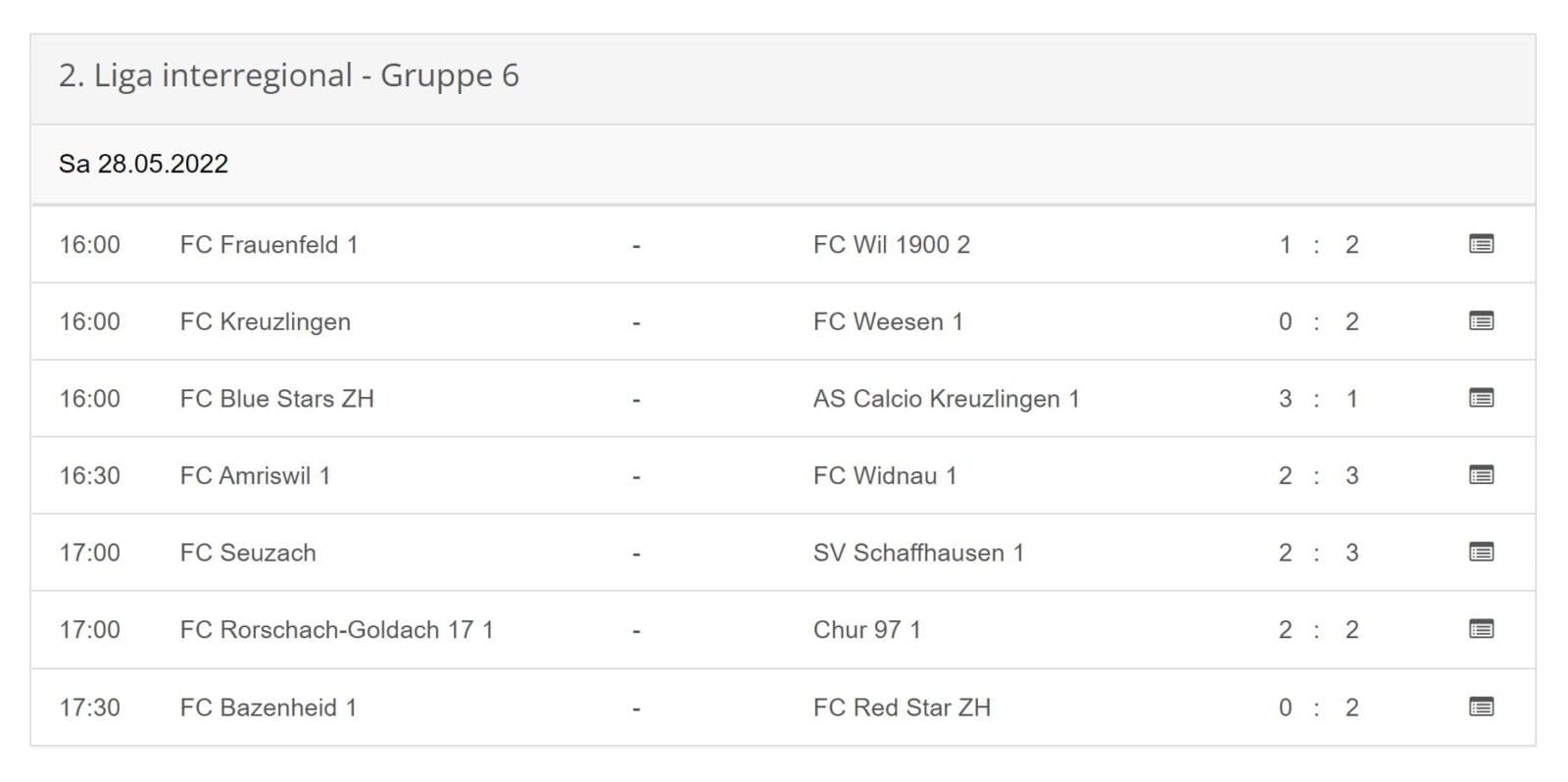 FC RG 17: Matchbilder & Resultate 2. Liga interregionalThemen:FC Rorschach-Goldach 17 29. Mai 2022 - 05:30An der Tabellenspitze wird 2 Runden vor Schluss nochmals so richtig eng! Der Matchbericht von Pfütz Keel wird dann nachgeliefert. Teilen mit: Einen Link per E-Mail an einen Freund senden (Wird in neuem Fenster geöffnet) E-Mail Drucken (Wird in neuem Fenster geöffnet) Drucken Auf Facebook teilen (Wird in neuem Fenster geöffnet) Facebook Auf X teilen (Wird in neuem Fenster geöffnet) X Auf WhatsApp teilen (Wird in neuem Fenster geöffnet) WhatsApp Gefällt mir:Gefällt mir Wird geladen …Newsletter abonnieren Bitte dieses Feld leer lassenBitte wähle, ob Du über jeden neuen Beitrag sofort oder lieber jeden Morgen gegen 9 Uhr eine Zusammenfassung der neusten Beiträge erhalten möchtest.Liste(n) auswählen: Neues vom Echo (Zusammenfassung) Neues vom Echo (Sofortbenachrichtigung) Dieses Feld wird benötigt.Prüfen Sie Ihren Posteingang und den Spamordner, um Ihr Abonnement zu bestätigen.