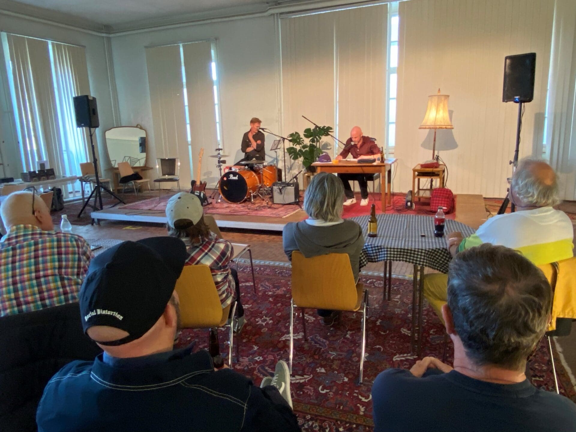 Autor und Musiker Frank Heer und sein Begleiter Jürg Plüss (Drums und Stimme) liessen sich gestern Donnerstag von der relaxten Atmosphäre in der Kleberei in der Feldmühle in Rorschach anstecken. Es gab nicht nur Auszüge aus dem neuen Roman Alice, sondern auch musikalische Perlen aus den Siebzigerjahren zu hören. Von Black Sabbath über Lou Reed, bis Pink Floyd war vieles dabei, dass das Publikum in Erinnerungen schwelgen liess.
