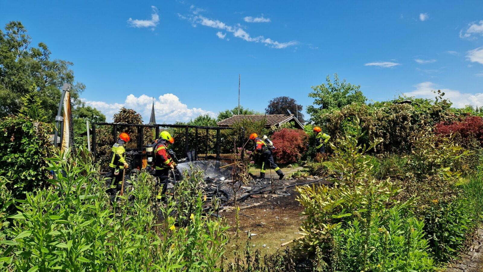 In der Schrebergartenanlage Neuhus in Rorschacherberg (unmittelbar beim Friedhof) brannte heute Nachmittag ein Gartenhäuschen. Die Feuerwehr wurde um 12.45 Uhr alarmiert und hatte den Brand schnell unter Kontrolle. Das Ganze ist glimpflich abgelaufen, einzig vom Gartenhäuschen ist nicht viel übrig geblieben. Die hier zeigten Bilder wurden dem Rorschacher Echo zugeschickt. Herzlichen Dank.