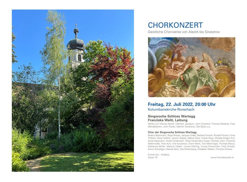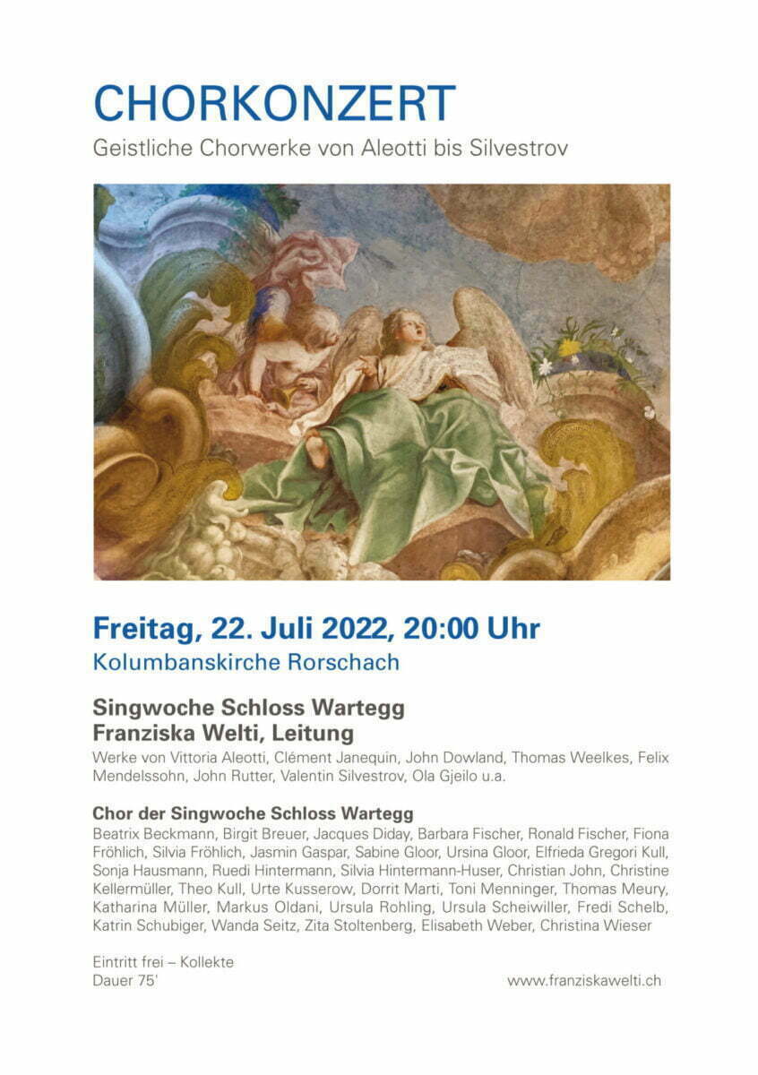 Geistliche Chorwerke am Freitagabend in RorschachThemen:KulturRorschach 20. Juli 2022 - 05:15Die Details zu diesem Chorkonzert kommenden Freitag in der Kolumbanskirche finden Interessierte auf dem Flyer unten.Teilen mit: Einen Link per E-Mail an einen Freund senden (Wird in neuem Fenster geöffnet) E-Mail Drucken (Wird in neuem Fenster geöffnet) Drucken Auf Facebook teilen (Wird in neuem Fenster geöffnet) Facebook Auf X teilen (Wird in neuem Fenster geöffnet) X Auf WhatsApp teilen (Wird in neuem Fenster geöffnet) WhatsApp Gefällt mir:Gefällt mir Wird geladen …Newsletter abonnieren Bitte dieses Feld leer lassenBitte wähle, ob Du über jeden neuen Beitrag sofort oder lieber jeden Morgen gegen 9 Uhr eine Zusammenfassung der neusten Beiträge erhalten möchtest.Liste(n) auswählen: Neues vom Echo (Zusammenfassung) Neues vom Echo (Sofortbenachrichtigung) Dieses Feld wird benötigt.Prüfen Sie Ihren Posteingang und den Spamordner, um Ihr Abonnement zu bestätigen.