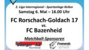Seit gestern läuft das traditionelle Pokalturnier beim FC Rebstein. Der FC Rorschach-Goldach 17 ist mit einem 1:0 Sieg gegen Rüthi ins Turnier gestartet und spielte dann gegen Gastgeber Rebstein 1:1. Die Tore für den FC RG 17 erzielten Adi Morina und Dennis Vanin. Am Freitag folgen die Spiele gegen St. Margrethen (20.15 Uhr) und Au-Heerbrugg (21 Uhr). Das Rorschacher Echo wird diese Resultate am Samstagmorgen nachliefern.