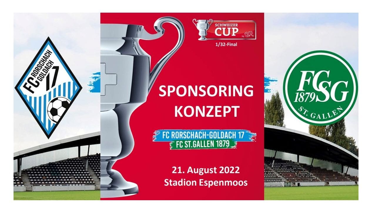 Die Verantwortlichen des FC Rorschach-Goldach haben für das bevorstehende Cup-Spektakel gegen den FC St.Gallen (Sonntag, 21. August 2022, 16 Uhr) auf dem legendären Espenmoos (und live auf SRF2) das entsprechende Sponsoringkonzept veröffentlicht. Dieses finden Interessierte unten. Raphael Pöder, Ralph Hilgers, Dani Niederer, Stefan Bartsch und Julian Haag stehen für weitere Auskünfte jederzeit gerne zur Verfügung. Und wer einen Matchball spenden will, wird hier fündig.