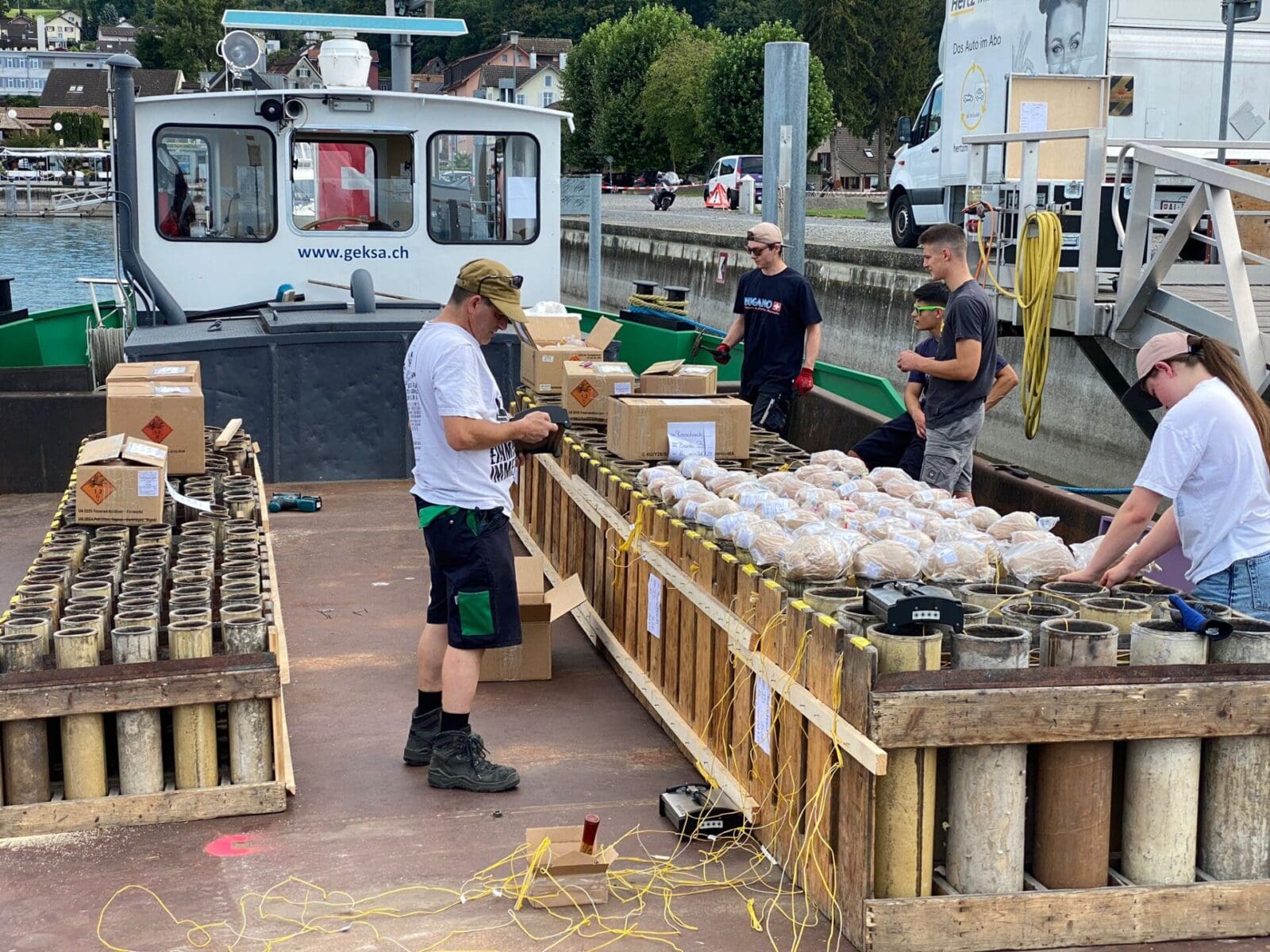 Der Aufbau für das Feuerwerk läuft auf HochtourenThemen:KulturRorschach 31. Juli 2022 - 17:57Das Schiff für das heutige grosse Feuerwerk auf dem See vor dem Arion in Rorschach wird in Staad fachgerecht beladen. Um 22.30 Uhr wird der Himmel in der Rorschacher Bucht hell erleuchtet. Teilen mit: Einen Link per E-Mail an einen Freund senden (Wird in neuem Fenster geöffnet) E-Mail Drucken (Wird in neuem Fenster geöffnet) Drucken Auf Facebook teilen (Wird in neuem Fenster geöffnet) Facebook Auf X teilen (Wird in neuem Fenster geöffnet) X Auf WhatsApp teilen (Wird in neuem Fenster geöffnet) WhatsApp Gefällt mir:Gefällt mir Wird geladen …Newsletter abonnieren Bitte dieses Feld leer lassenBitte wähle, ob Du über jeden neuen Beitrag sofort oder lieber jeden Morgen gegen 9 Uhr eine Zusammenfassung der neusten Beiträge erhalten möchtest.Liste(n) auswählen: Neues vom Echo (Zusammenfassung) Neues vom Echo (Sofortbenachrichtigung) Dieses Feld wird benötigt.Prüfen Sie Ihren Posteingang und den Spamordner, um Ihr Abonnement zu bestätigen.