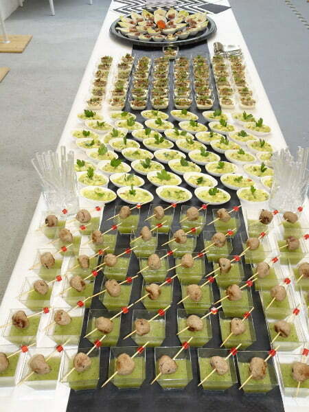 Im Trafo wurden, passend zu den Speisekarten, kulinarische Häppchen zur Degustation in mundgerechten Portionen angeboten (Antipasti, Vorspeisen, Fleisch- und Fischgerichte sowie Desserts). Alles liebevoll zubereitet von vereinseigenen Köchinnen und Köchen.