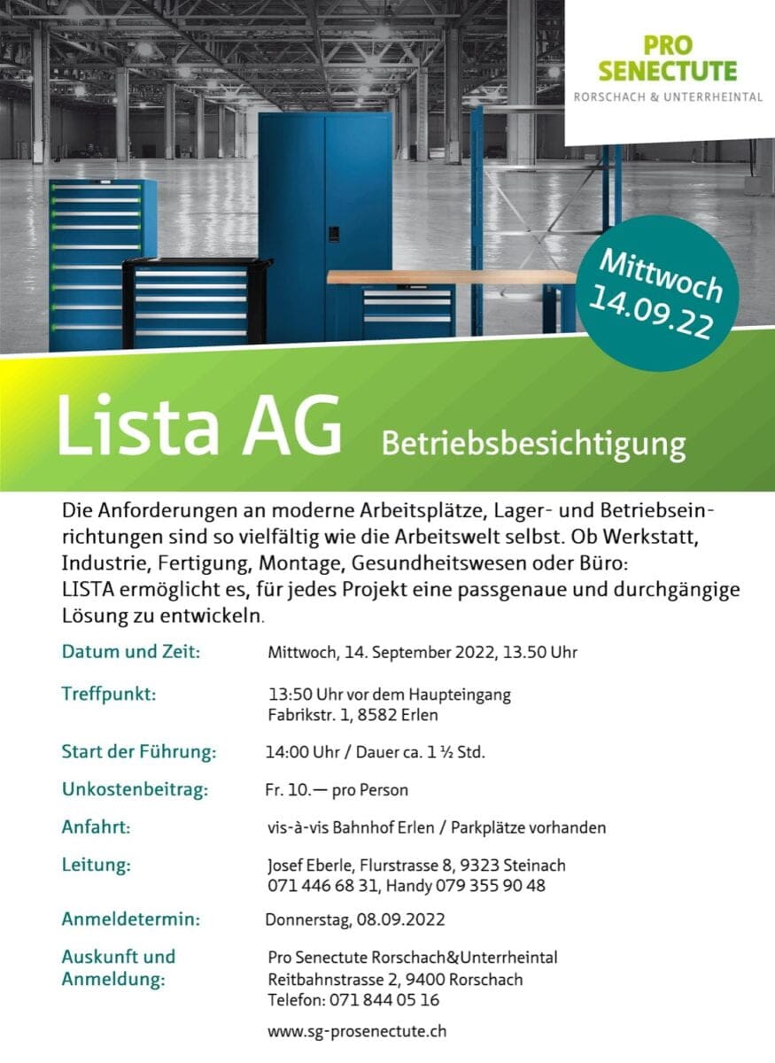 Details findet man auf dem Flyer unten. Anmeldeschluss ist Donnerstag, 8. September 2022. Mehr über das Angebot von Pro Senectute finden Interessierte hier.
