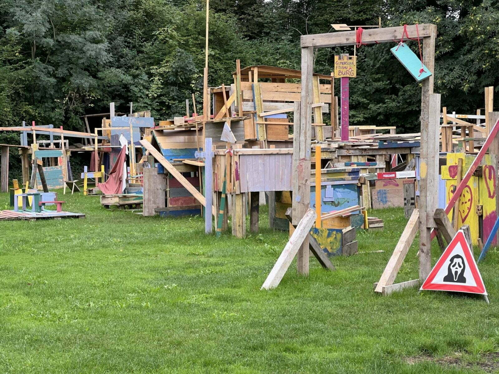 Gestern haben die Kinder damit begonnen, ihre Bauten auf der Kinderbaustelle abzubrechen. Am Samstag ist dann endgültig Schluss. Dann heisst es warten auf das nächste Jahr. Die Bilder wurden gestern Vormittag aufgenommen.