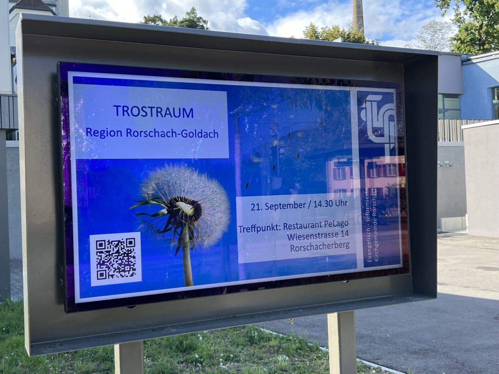 Heute Mittwoch, 21.09.2022, findet von 14.30 bis 15.30 Uhr im Restaurant im PeLago im Pflegeheim der Region Rorschach an der Wiesenstrasse 14 in Rorschacherberg ein weiterer „TrostRaum“ statt. Die Initiant:innen schreiben dazu: